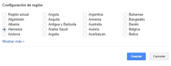 Accedemos a un nuevo panel y seleccionamos el país en cuestión (en este caso Alemania) y le damos a guardar