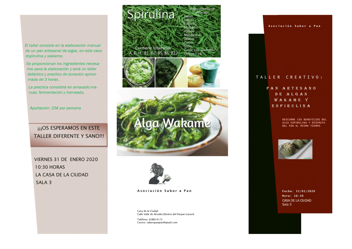 Empezamos el año con el taller de pan artesano de alga espirulina y alga wakame el dia 31 de enero de 2020, de dificultad media.