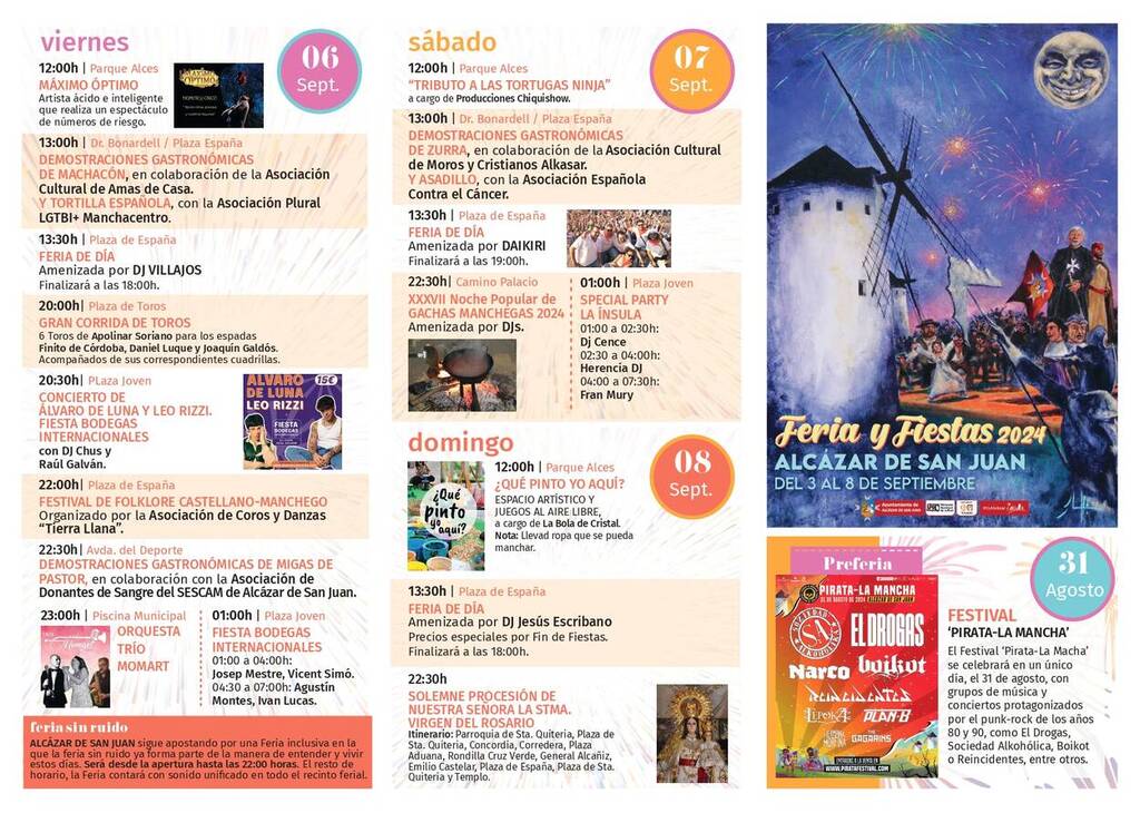 La denominada Plaza Joven, dentro del recinto ferial, aglutina el plato fuerte de la programación musical de la Feria y Fiestas 2024, con todos los conciertos y fiestas incluyendo el Festival 'Pirata-La Mancha', que se adelantará y aterrizará en nuestra ciudad el 31 de agosto. Más adelante, los eventos comienzan con las fiestas importadas del Levante de marcas como Bacarrá y Coco Loco, que tendrán lugar los días 3 y 4 de septiembre respectivamente, ambas gratuitas y desde las 01:00 hasta cierre.