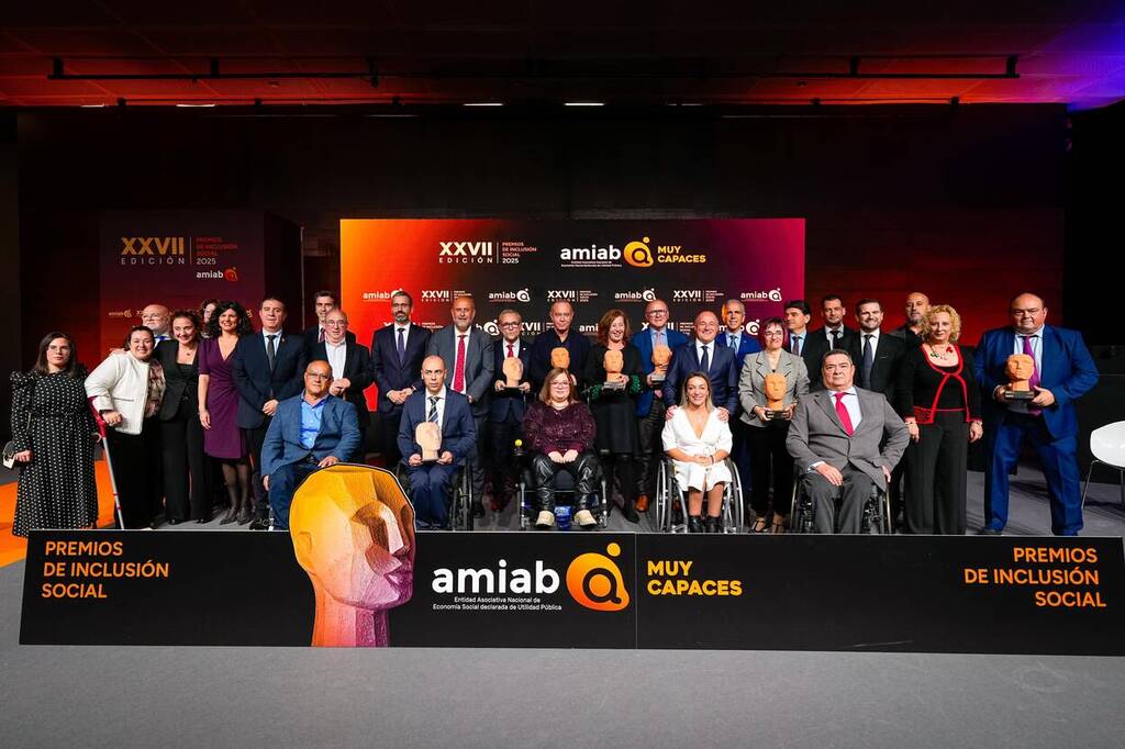 Amiab consolida su compromiso con la inclusión en una gala multitudinaria que entregó sus XXVII Premios>> La entidad presentó su nuevo lema ‘Muy Capaces’ durante una emotiva ceremonia en Albacete Objetivo CLM La asociación Amiab ha celebrado la XXVII edición de sus Premios a la Inclusión en un acto multitudinario que llenó la Sala Toledo del Palacio de Congresos de Albacete. Más de 600 personas asistieron a una gala cargada de emoción y reivindicación, donde se destacaron valores como la superación personal, la inclusión social y los derechos de las personas con discapacidad. El presidente de Amiab, Emilio Sáez, subrayó durante su discurso: “No tenemos límites, creemos en nosotros mismos. Hay cosas que no se ven a simple vista: la constancia, el coraje, el deseo de crecer… Nos enseñaron a medir la capacidad con reglas equivocadas. Cambiando la manera de mirar, verán mucha creatividad donde solo se veían límites. Tan solo se trata de crear oportunidades, de reconocer nuestro valor. Somos muy Capaces”. Entre los galardonados figuraron Francina Armengol, presidenta del Congreso de los Diputados; Pilar Villarino, directora del Comité Español de Representantes de Personas con Discapacidad (CERMI); Gerardo Gutiérrez, director general del Servicio de Empleo Público Estatal (SEPE); el Grupo Rujamar; y la nadadora Teresa Perales. Además, recibieron menciones especiales la Federación de Deportes para Personas con Discapacidad (FECAM), la Asociación de Familias de Niños con Cáncer (Afanion) y la Asociación para la Actividad Física y Deporte Adaptado (Metasport CLM). El evento, presentado por la periodista Mariló Leal, incluyó momentos emotivos como la proyección de un vídeo que presentó el nuevo lema de la entidad: ‘Muy Capaces’, y la actuación de los jóvenes del Centro Ocupacional de Amiab. Intervinieron en el acto, además del presidente de la entidad, la presidenta del Congreso, los delegados del Gobierno en Castilla-La Mancha y Murcia, el vicepresidente regional, el presidente de la Diputación de Albacete y el teniente de alcalde de la ciudad. La gala sirvió también para destacar hitos como la reciente modificación del Artículo 49 de la Constitución Española, que elimina términos peyorativos hacia la discapacidad, y los éxitos europeos del equipo de Baloncesto en Silla de Ruedas Amiab Albacete. Con cerca de 2.000 personas empleadas, la mayoría con discapacidad, Amiab se encamina hacia la celebración de sus 40 años de vida, reafirmando su papel en la lucha por la igualdad y la inclusión social. La ceremonia demostró una vez más su gran capacidad de convocatoria y su influencia en la reivindicación de una sociedad más justa. |