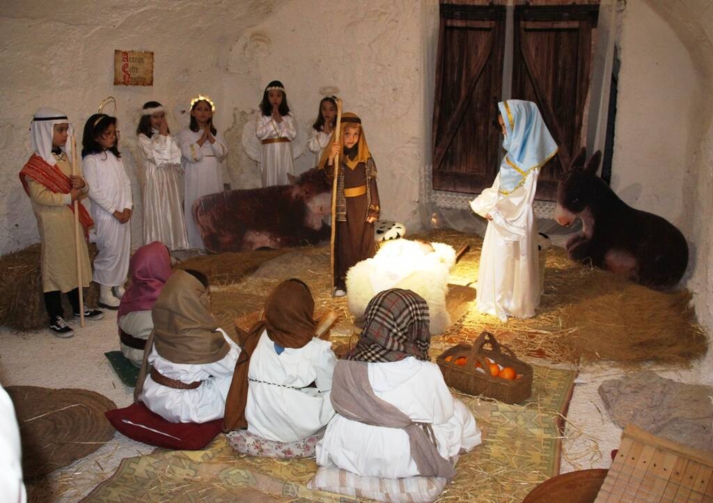 Este año el Belén se extendió por diversos espacios del casco urbano, comenzando en la Plaza Mayor con la recreación de la vida cotidiana y oficios tradicionales como frutero, panadero, carpintero o vendedores de telares. El recorrido continuaba en la parte trasera de la iglesia de Santa Catalina con la Anunciación a la Virgen María, seguido del campamento de los Reyes Magos en La Lonja y la escena de los pastores con el anuncio del ángel. La ruta incluía un original itinerario por las cuevas de la Casa de la Iglesia, donde se representaban la Creación, las promesas de los profetas y finalmente el nacimiento de Jesús.