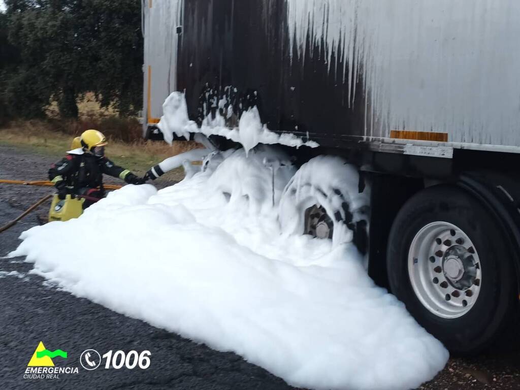 Según ha informado el SCIS de Ciudad Real, procedieron a refrigerar con agua el neumático y el contenedor exterior del vehículo, que además desprendía gases nocivos. Tras controlar la situación, los bomberos verificaron la temperatura del área afectada utilizando una cámara térmica y sellaron el foco con espuma para evitar posibles reactivaciones del fuego.