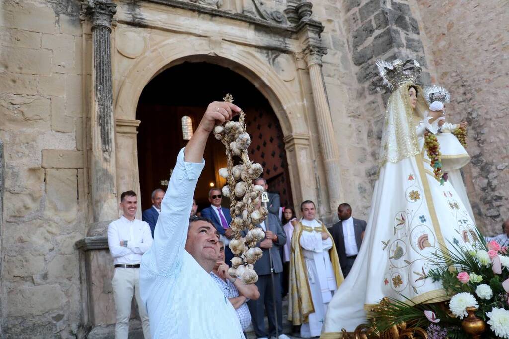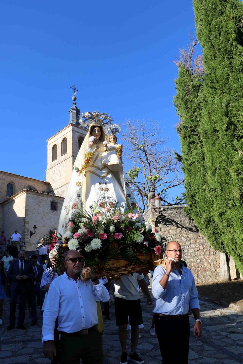 Brillante y emotiva procesión en honor a la Virgen de los Remedios, patrona de CogolludoObjetivo CLM Cogolludo ha conmemorado su día grande, el día de la Virgen de los Remedios, con la doble celebración, matutina y vespertina, que caracteriza al 15 de agosto local. Es la Cofradía de la Virgen de los Remedios, uno de los colectivos más antiguos de la villa ducal, la que organiza los actos en honor a la patrona de Cogolludo. La Cofradía fue fundada en el año 1583 con el nombre de Nuestra Señora del Remedio y del Rosario; más tarde, en el año 1600, pasó a llamarse Nuestra Señora del Remedio, posteriormente, en el año 1678, tomó el nombre de Nuestra Señora de los Remedios, que es el que actualmente ostenta. En 2024, su hermano mayor saliente es Andrés Saboya. El hermano mayor, protagonista de la celebración del año en curso, es este año Jesús García, mientras que el entrante es Marcos Sánchez. En su saluda de fiestas del programa religioso, Jesús García comparte con los cogolludenses su emoción por ser el hermano mayor de este 2024, y desea “que todos vivamos con alegría, devoción y amor nuestras Fiestas Patronales en Honor a Nuestra Patrona, la Virgen de los Remedios”. Por su parte, el párroco local, Mauricio Muela, exhorta a que los cristianos del siglo XXI, “seamos testigos de la grandeza de Dios en Nuestra Madre y mantengamos la devoción y cariño a la Virgen. Estoy seguro que ella escucha, acoge y guarda en su corazón los anhelos y esperanzas de cada uno de nosotros. Que la Virgen nos bendiga, y estos días sean días de alegría y hermandad”. La tradición obliga al hermano mayor a portar el cetro de la Cofradía, durante la fiesta, asumir la presidencia, e invitar a los cofrades a un refresco y a las habituales caridades -el dulce típico de la celebración- además de a estar presente en la procesión del 15 de agosto, por la tarde, la más emotiva del año en la villa serrana, con más de dos horas de duración y un recorrido de prácticamente tres kilómetros. Al menos desde el año 1950, según asegura en un ensayo Juan Luis Pérez Arribas, cronista oficial de Cogolludo hasta su muerte, el recorrido y ceremonial de esta hermosa tradición local permanecen invariables, salvo leves modificaciones. Ayer, la procesión salía de la iglesia de Santa María. Antes de iniciar la marcha, Francisco José García subastaba en el atrio los brazos de las andas y el estandarte. Después comenzaba la procesión, con su orden riguroso establecido, con el siguiente itinerario: marchó bajando la escalinata de Santa María y continuó por la cuesta de San Pedro. En la pequeña explanada que hay junto a la fuente de San Pedro, tenía lugar la primera parada. Se reanudó la procesión por la calle de San Pedro y continuó por la calle de Labradores. Allí tenía lugar la segunda parada. Hasta los años 70, en esta parada se ponían los niños en el manto de la Virgen. La procesión siguió hacia la Farola y continuó por la calle del Caño hasta la Plaza de la Acacia. Aquí se efectuó la tercera parada. En ella también se ofrecían los niños a la Virgen, costumbre que siguió, igualmente, hasta 1970. Quizá el que hubiese en épocas pasadas muchos niños, fuera el motivo de poner en todas las paradas a los niños en el manto de la Virgen. En ella, un hijo del pueblo, Antonio Montero, leyó una hermosa y nostálgica poesía que compuso sobre sus recuerdos de Cogolludo, siendo un niño, dedicada a la Virgen de los Remedios. Desde aquí siguió la procesión por la calle Medina, pasando por la plaza de la Fuente Abajo, hasta llegar a las Cuatro Esquinas, en la confluencia de la calle del Carmen con la calle Nueva donde se verificó la cuarta parada. Allí, asimismo, se ofrecían los niños a la Virgen. La procesión subió por la calle Nueva Alta y en su intersección con el callejón de Palacio se produjo la quinta parada. Esta parada es relativamente moderna, no lleva realizándose más de 40 años. Por la calle de Palacio, llegó la procesión hasta la Plaza Mayor, donde en su parte más occidental se hizo la última parada. Desde 1970, aquí tiene lugar la ofrenda de los niños a la Virgen, hecho que se produce en exclusiva en esta sexta y última parada, suprimiéndose el ofrecimiento de los niños que antes se hacía en todas las demás. Además del referido ofrecimiento de los niños, en cada parada, en los años 50, se cantaba un motete interpretado por una capilla de cantores (tenor, barítono y bajo) dirigidos por el maestro Azagra y acompañados por el armonio, dos violines y un violonchelo. Hoy, es el coro parroquial el que interpreta una canción después de rezado un misterio del Santo Rosario. Desde la Plaza Mayor, una vez efectuada la presentación de los niños a la Virgen, la procesión prosiguió por la calle Jesús y María, calle Juan de Mingo (antes de 1927 llamada de la Estrella) y cuesta de Santa María. En el atrio de la iglesia se subastaron de nuevo los brazos de las andas, el estandarte y las ofrendas. haciendo la conversión de euros a pesetas de cabeza, para rememorar viejos tiempos. Terminada la subasta, y con ello el trabajo de Francisco José García, que animó con la gracia que suele, convirtiendo las pujas de euros a pesetas, e incluso a reales, la procesión terminó en el interior de la iglesia con el solemne canto de la Salve a Nuestra Señora de los Remedios. Hoy, día 16 de agosto, y desde el año 1960, se celebra una misa por los hermanos difuntos de la Hermandad. Referencias históricas La primera referencia escrita de la procesión de Nuestra Señora de los Remedios es del año 1594. Antiguamente la fiesta de la Virgen se celebraba el primer domingo de octubre, pasando en el siglo XVII a celebrarse el día 15 de agosto, festividad de la Asunción de Nuestra Señora. A partir de esta primera cita, son innumerables las referencias que se hacen a la procesión de la Fiesta de la Virgen de los Remedios. En estas fiestas, 