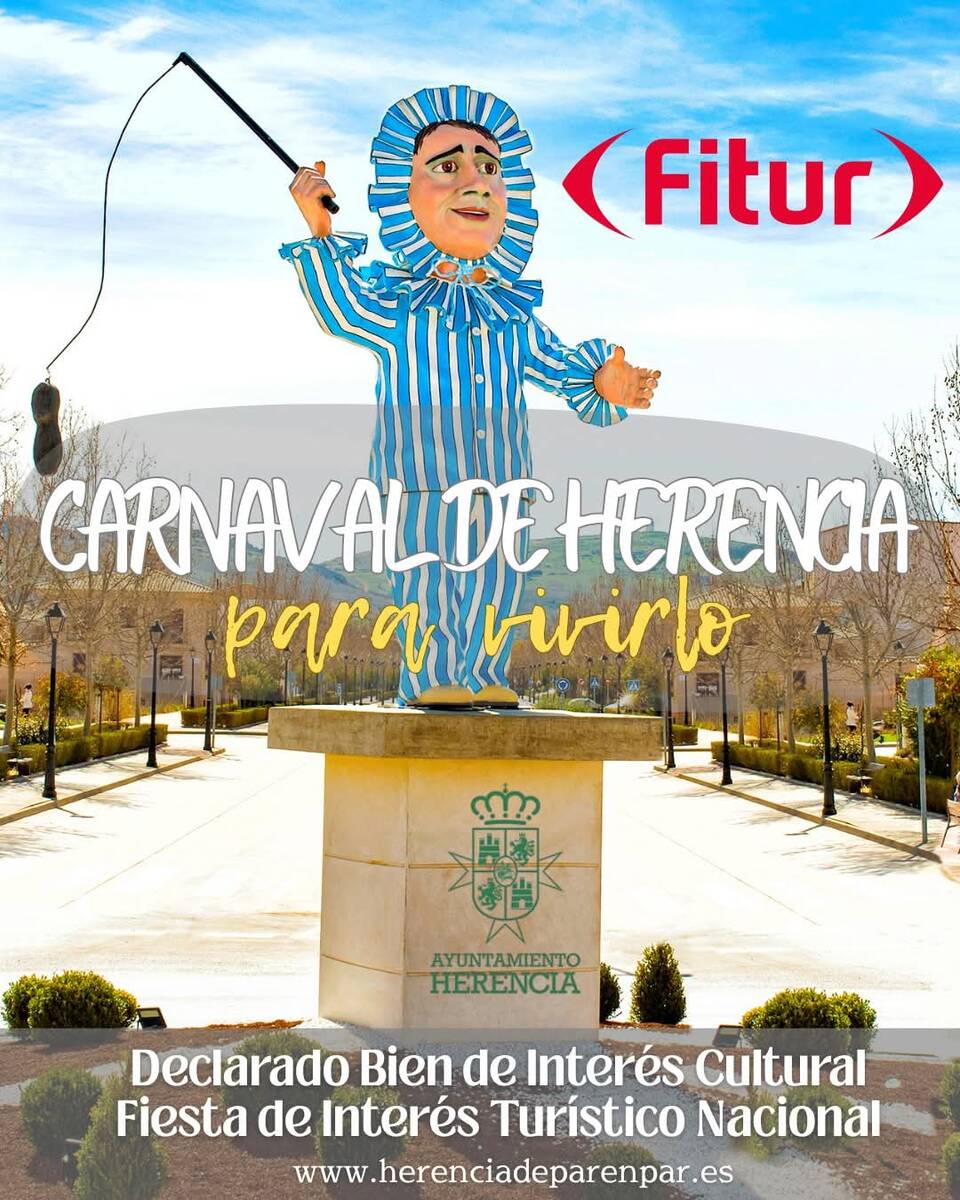 El Carnaval de Herencia y su reciente declaración como Bien de Interés Cultural presentes en FITUR Objetivo CLM Del 21 al 26 de enero Madrid acoge la Feria Internacional de Turismo, todo un referente en el sector y en el que una edición más, Herencia estará presente este año con su Carnaval, tras la reciente declaración como Bien de Interés Cultural en la categoría de Patrimonio Inmaterial. Y es que si hay algo que caracteriza el Carnaval de Herencia es sobre todo, que es popular y su gran escenario es la calle, donde se desarrolla prácticamente toda la vida carnavalera. En palabras de María Eugenia Díaz-Pacheco Galán, concejala de Turismo y Patrimonio, “FITUR es una oportunidad inmejorable para mostrarnos al mundo y dar a conocer la singularidad de Herencia y su Carnaval, en el que el Patrimonio Inmaterial y el Turismo confluyen. Esta es la propuesta que el municipio de Herencia presenta en FITUR 2026, invitando a todas aquellas personas que quieran visitarlo, a unirse a una fiesta que es patrimonio vivo colectivo pero que es, sin duda, para vivirlo”. |