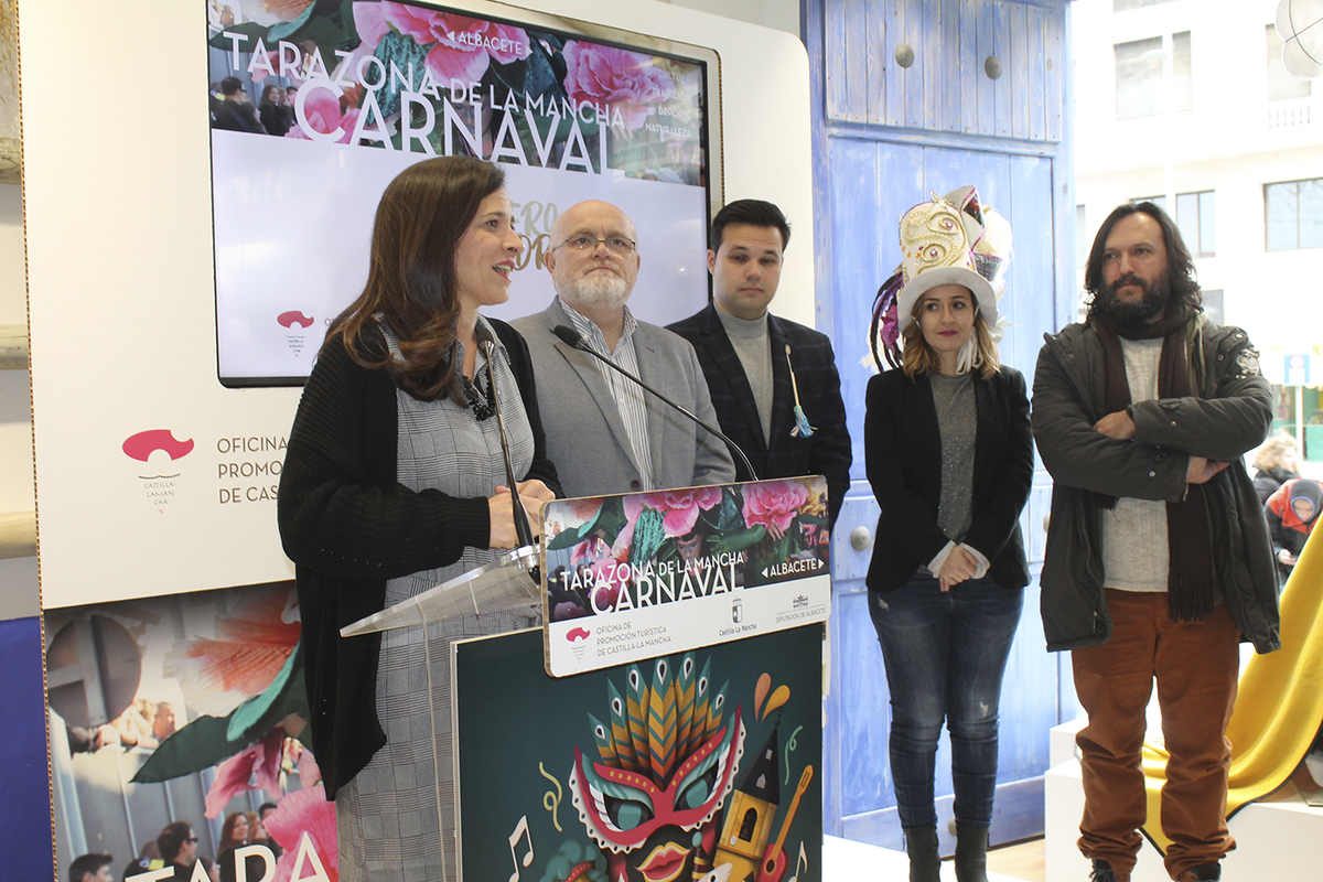 El acto de presentación del Carnaval 2019 de Tarazona de la Mancha y de su monumento al Carnaval, que se ha desarrollado en Madrid, ha mostrado a los asistentes tanto el cartel de la inminente edición del Carnaval como el de su versión infantil.