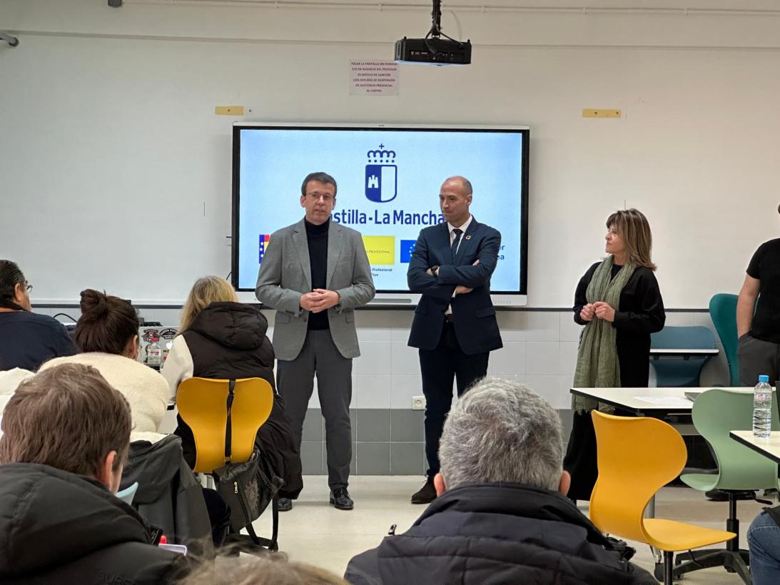 Cerrillo, acompañado por el delegado provincial de Educación, Cultura y Deporte, Gustavo Martínez, explicó que este proyecto, desarrollado por los departamentos de Informática y Comunicación y Administración y Gestión del centro, en colaboración con la Unión de Empresarios, Comerciantes y Autónomos de Castilla-La Mancha (UNECAMAN), tiene como objetivo principal que los alumnos actúen como embajadores del conocimiento.