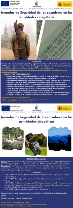 El Gobierno de Castilla-La Mancha, a través de la Consejería de Desarrollo Sostenible, ha organizado una serie de jornadas formativas gratuitas para mejorar la seguridad de los cazadores durante las actividades cinegéticas. El viceconsejero de Medio Ambiente, José Almodóvar, ha destacado que estas iniciativas "ejemplifican de nuevo los trabajos que estamos realizando junto al sector en materia de sensibilización y difusión de la caza como una actividad segura, sostenible, y necesaria para el equilibrio de nuestro medio natural".