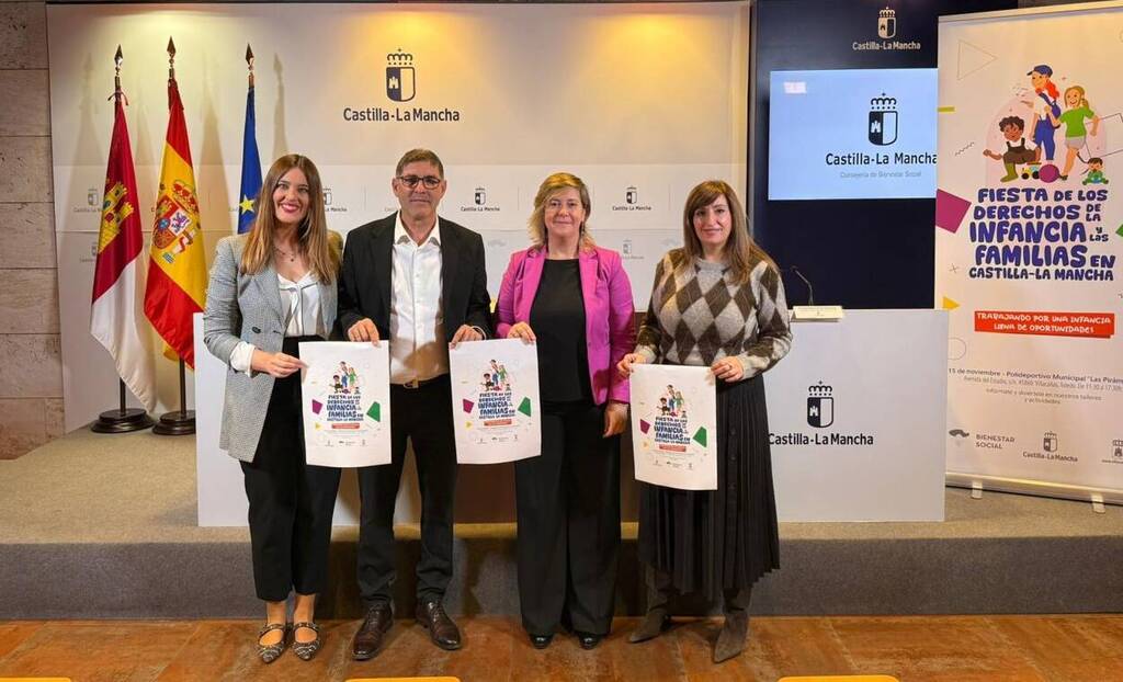 La Consejería de Bienestar Social, a través de la Dirección General de Infancia y Familia, ha presentado hoy la Fiesta de los Derechos de la Infancia y las Familias, que se celebrará este sábado, 15 de noviembre, en el polideportivo municipal “Las Pirámides” de Villacañas (Toledo). La jornada está diseñada para impulsar la inclusión, la convivencia y la participación infantil, acercando los derechos de la infancia a través de actividades lúdicas y educativas dirigidas a niños, niñas, adolescentes y sus familias.