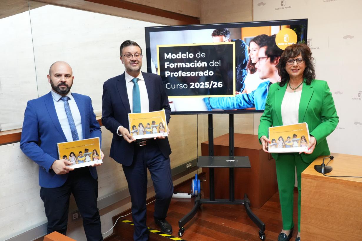 El consejero de Educación, Cultura y Deportes, Amador Pastor, ha sido el encargado de dar a conocer este modelo durante una presentación en la que ha estado acompañado por el director del Centro Regional de Formación del Profesorado, Juan Carlos Palomino, y la viceconsejera de Educación, Universidades e Investigación, Mar Torrecilla. Pastor ha destacado que este enfoque combina, de manera estructurada, tres elementos clave: itinerarios formativos por áreas de competencia docente, microcredenciales universitarias en colaboración con la UCLM, y un modelo competencial que conecta la formación con la práctica en el aula, la innovación y el liderazgo educativo.