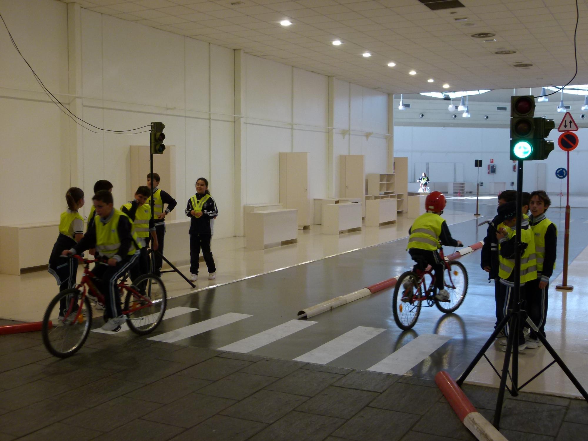 En su recorrido tuvieron que fijarse en las marcas viales, como pasos de peatones o delimitación de carriles, y en señales verticales y luminosas, con semáforos en distintas zonas. Para complicar más la situación, los compañeros que en ese momento no circulaban en bici o kart hacían de peatones. Otros, en tareas policiales, multaron tanto a los conductores como peatones que no cumplían con las normas de tráfico, fundamentalmente por no respetar los pasos de peatones o los semáforos.
