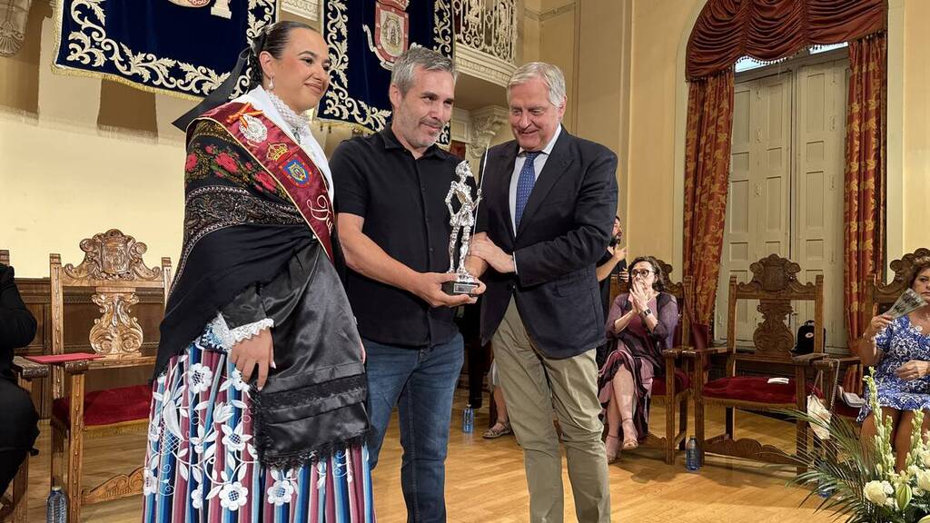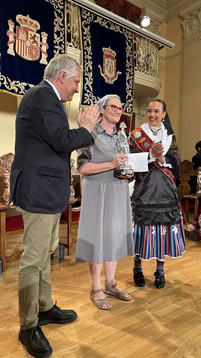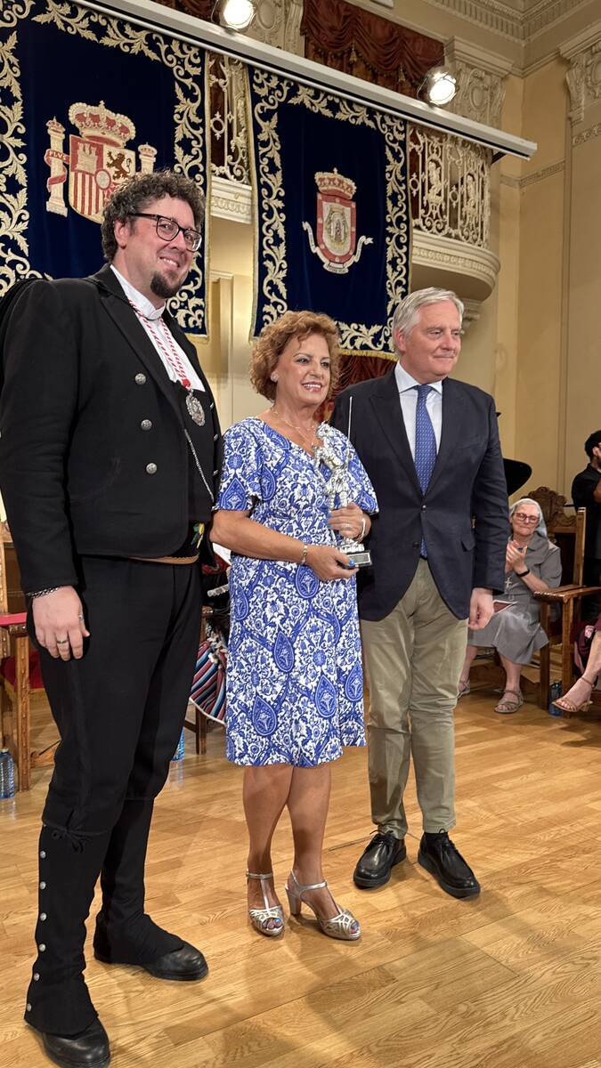 Los familiares de los homenajeados, Mariola Mayor (hija de José Mayor), Adrián Blasco (viudo de Conchi Sánchez), Cristina Villar (viuda de Carlos de la Torre) y María Luisa Duro (superiora provincial de la Congregación de religiosas de María Inmaculada), han recibido las estatuillas con la figura de Don Quijote, símbolo de la distinción.