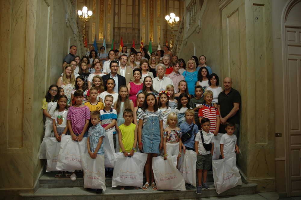 El presidente de la Diputación, José Manuel Caballero, la alcaldesa de Ciudad Real, Pilar Zamora y el presidente de la asociación CREAN, Ramón Serrano, han presidido el acto de bienvenida a los 50 niños y niñas ucranianos que durante 45 días van a estar de acogida con familias ciudadrealeñas. Los 50 chicos y chicas ucranianos provienen de la zona afectada por la catástrofe de Chernobyl, del cual todavía dura la radiación, por lo que uno de los objetivos de esta acogida, como ha confirmado Ramón Serrano, es “mejorar la salud de todos ellos y que salga lo mejor posible”.