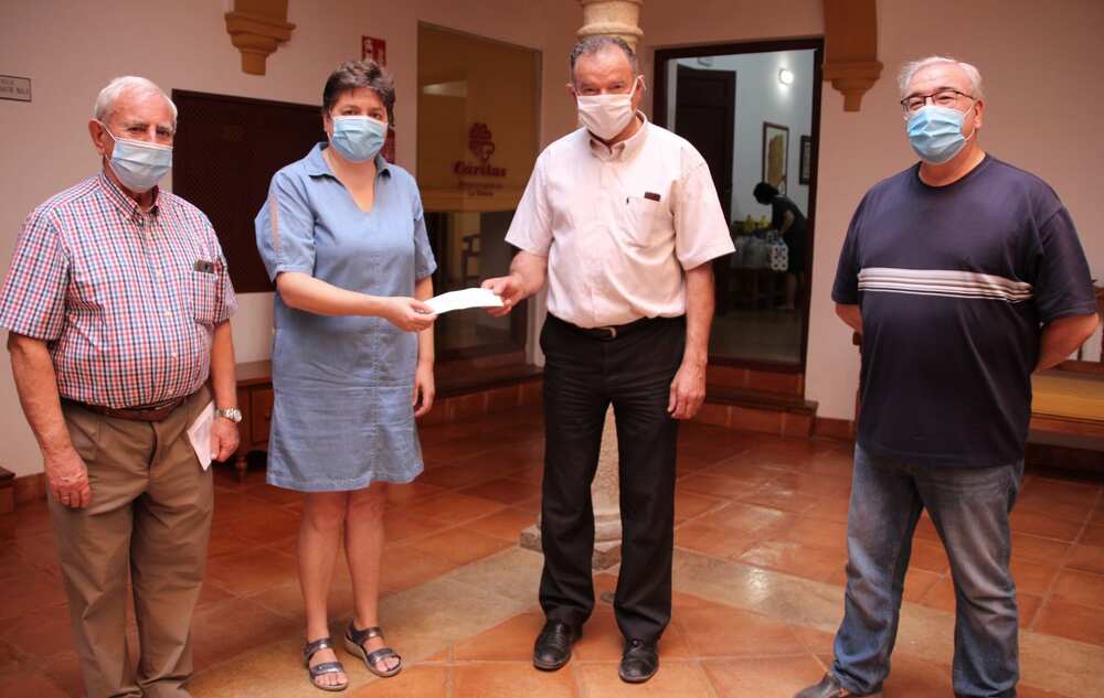 La puerta de entrada a la sede de Cáritas Interparroquial continúa llena. Se multiplican las personas que hacen cola en busca de ayuda y la institución se esfuerza al máximo para atender la demanda. Por fortuna, no faltan gestos de apoyo ciudadano a la hora de dar donativos y un buen ejemplo es la empresa Bodegas Romero de Ávila Salcedo. Su propietario, Santiago Romero de Ávila, suele colaborar con Cáritas en materia económica y este viernes entregó un cheque por valor de 1.100 euros, resultado de la venta de 100 estuches de vino en distintos establecimientos de la localidad. El secretario local, Andrés Moreno, agradeció el gesto. “Es muy importante que se acuerden de nosotros en estos momentos de tanta necesidad”.