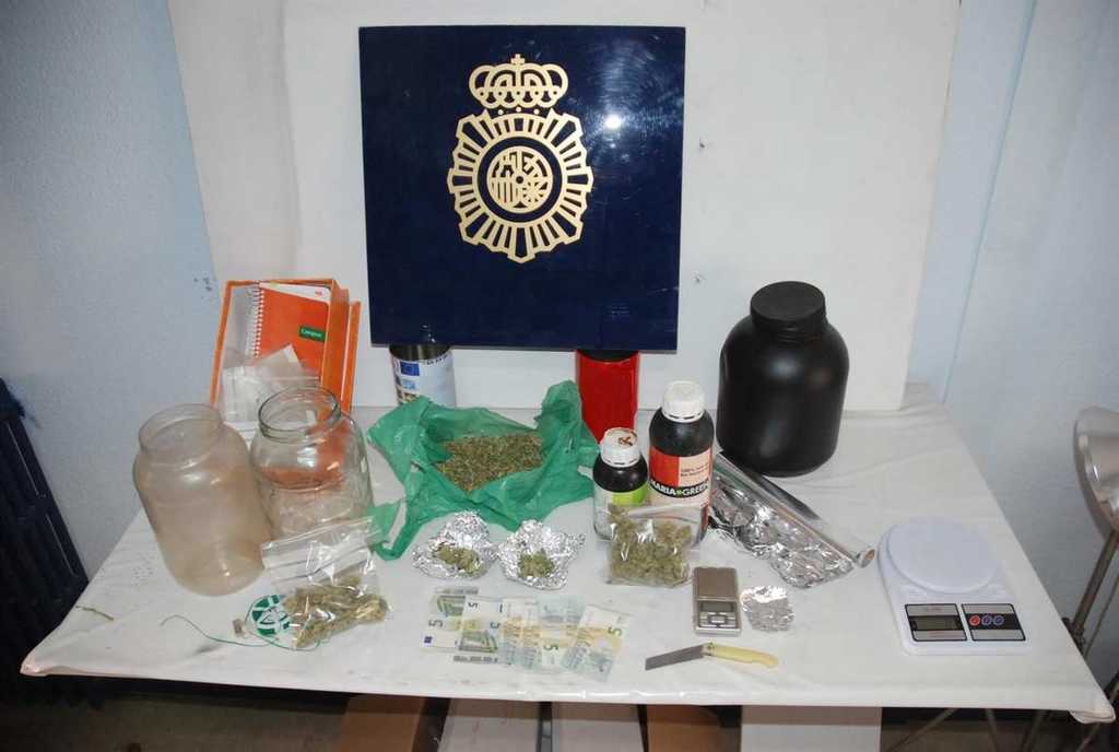 En el registro efectuado en el domicilio de estas dos personas se incautaron 167 gramos de marihuana, una balanza de precisión, un aparato para picar con restos de marihuana, un rollo de papel plata, un rollo de hilo de alambre de color verde, cuatro bote de plástico grandes con restos de marihuana en su interior, una agenda con anotaciones de la actividad ilícita, una caja registradora con dinero de cambio en su interior, dos botes de fertilizantes y una navaja de barbero.