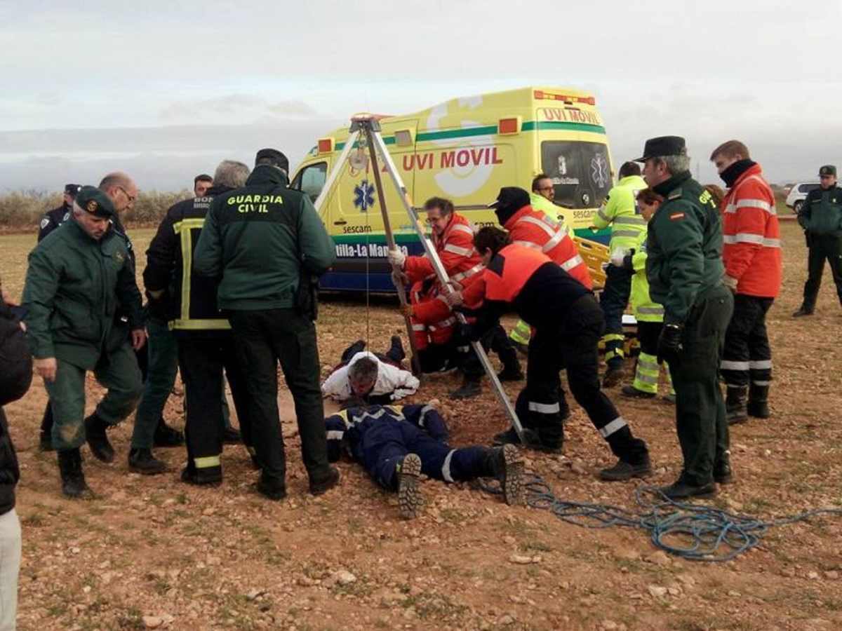 El suceso que ocurrió en enero de 2016 en Manzanares tuvo, afortunadamente, un final feliz. Un hombre de 39 años pisó las rasillas colocadas sobre un pozo a ras de suelo en el campo. Esa tapa se rompió y cayó a 10 metros de profundidad. Tras permanecer desaparecido más de 24 horas fue localizado por Protección Civil y rescatado vivo con fracturas en la rodilla.