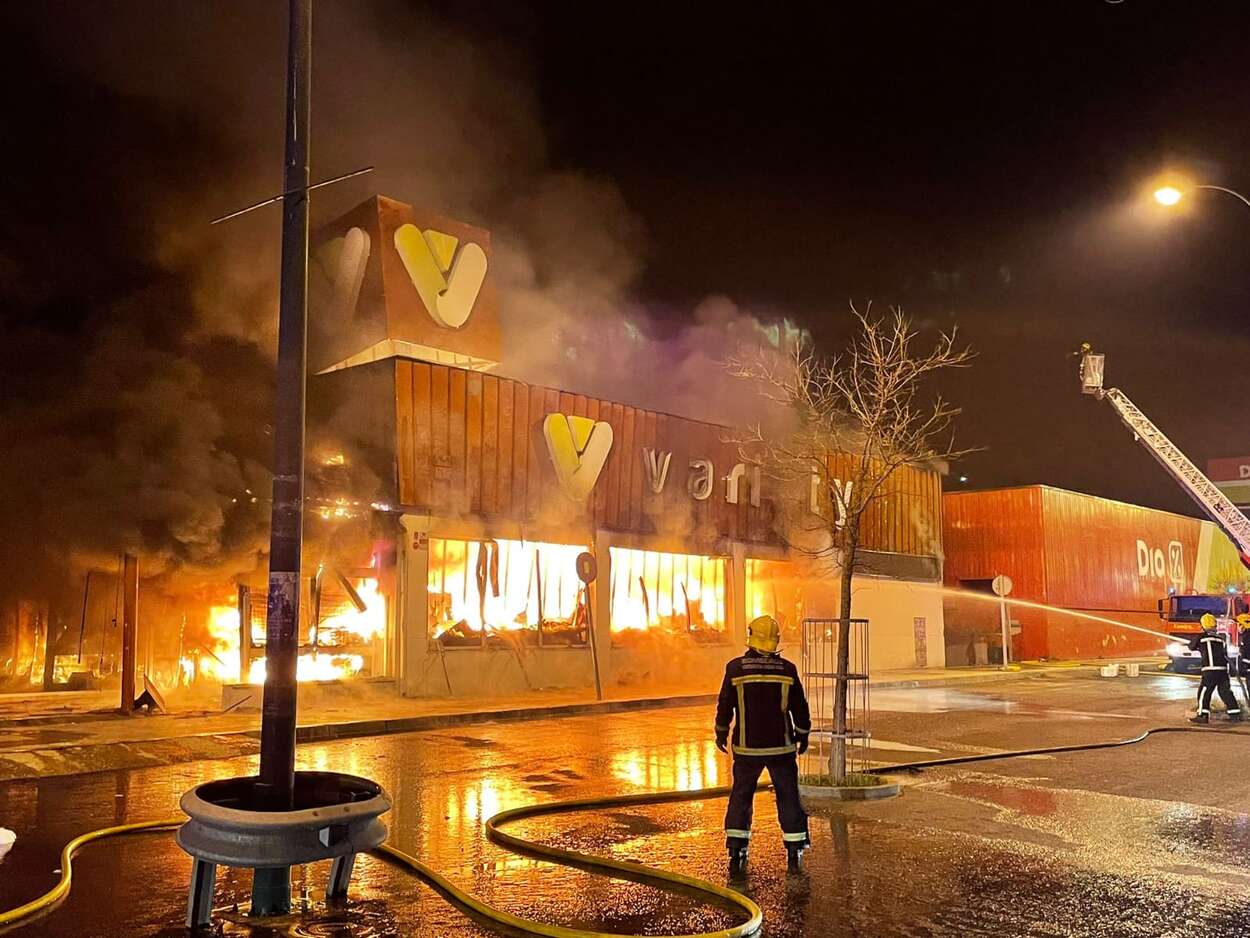 Un gran incendio declarado en una nave dedicada a bazar, en la carretera de Argamasilla, en el término municipal de Puertollano, ha calcinado totalmente el negocio sin causar heridos.