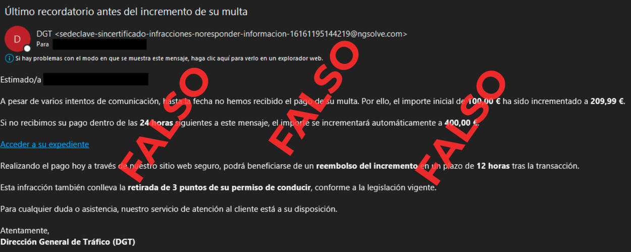 La Dirección General de Tráfico (DGT) ha detectado un nuevo correo electrónico fraudulento que suplanta su identidad para intentar robar datos personales y bancarios a los ciudadanos. A través de sus redes sociales, el organismo ha alertado sobre este intento de phishing y ha recomendado ignorar y eliminar inmediatamente cualquier mensaje con las características mostradas en la imagen compartida en la alerta.