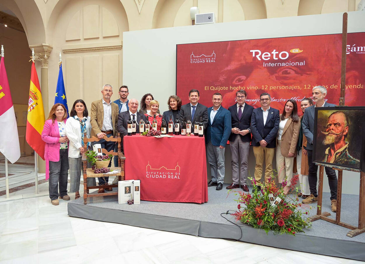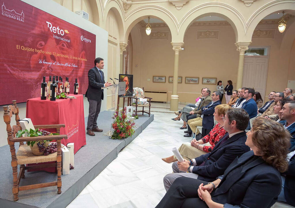 Ha precisado que se ha impulsado esta propuesta desde la Diputación de Ciudad Real, un proyecto que reúne doce vinos de calidad procedentes de bodegas locales, cuidadosamente seleccionados, y cada uno de ellos ilustrado con un retrato de personajes del Quijote realizado por el maestro Alfredo Palmero, artista de renombre universal vinculado profundamente a La Mancha.