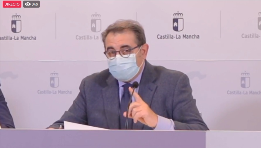 El consejero de Sanidad, Jesús Fernández Sanz, la directora general de Cuidados y Calidad del SESCAM, Begoña Fernández y el director general de Recursos Humanos del SESCAM, Íñigo Cortázar, dan a conocer datos sobre el proceso de vacunación contra el COVID-19 en Castilla-La Mancha.