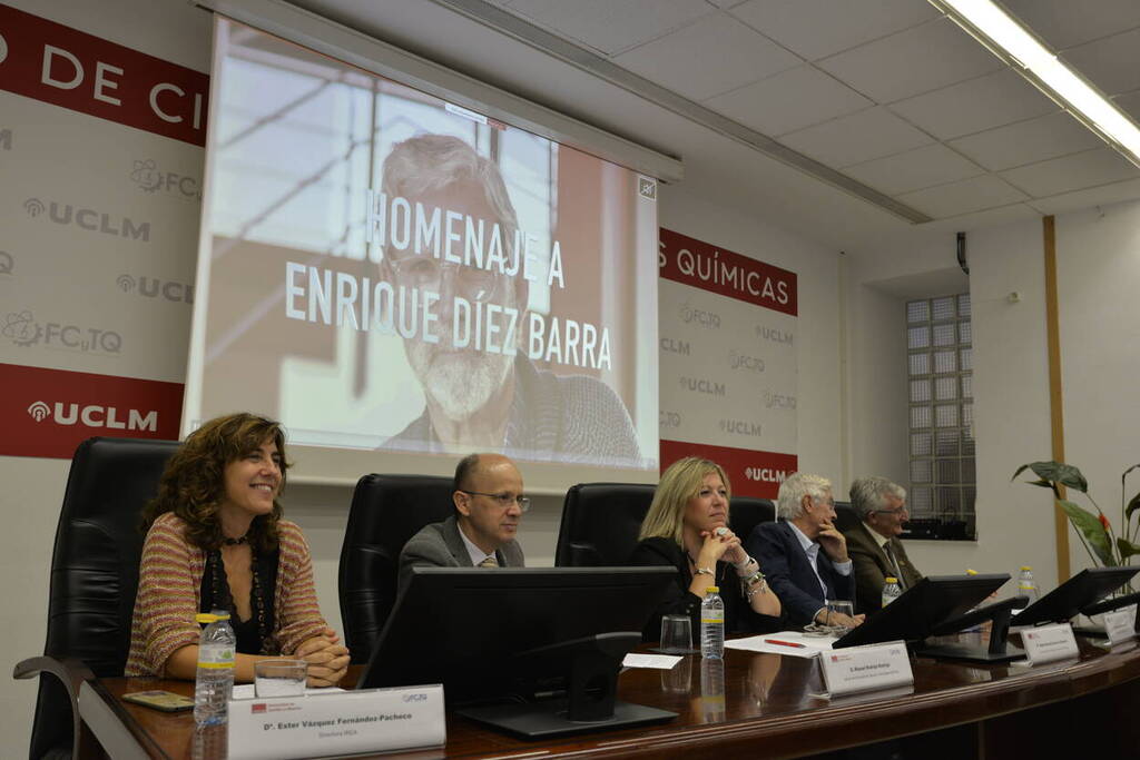 El profesor de la Universidad de Castilla-La Mancha (UCLM) Enrique Díez Barra se despidió el curso pasado de las aulas para iniciar una nueva etapa, la de la jubilación. Hoy, su centro, la Facultad de Ciencias y Tecnologías Químicas del Campus de Ciudad Real, y más concretamente el Área de Química Orgánica, le ha rendido un emotivo homenaje en el que se ha destacado la figura de quien fuera su primer decano y su papel como profesor, investigador y gestor.