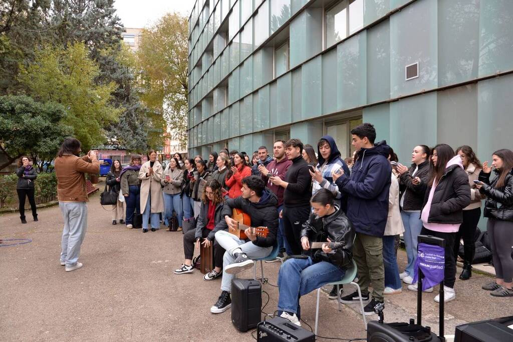La Facultad de Educación de Ciudad Real recuerda con música y la lectura de un manifiesto la realidad que viven muchas mujeres>> El centro de la UCLM se suma al 25N Objetivo CLM La Universidad de Castilla-La Mancha (UCLM) sigue sumando iniciativas en torno al Día Internacional de la Eliminación de la Violencia contra la Mujer que se conmemora mañana, 25N, y en esta ocasión ha sido la Facultad de Educación del Campus de Ciudad Real la que ha acogido un acto que ha incluido la formación de un lazo humano negro y morado integrado por personal docente; personal técnico, de gestión y de administración y servicios, y estudiantes de centro, la lectura de un manifiesto y la interpretación de varias canciones por parte del alumnado. La actividad comenzaba con la interpretación del tema 'La puerta violeta' de Rozalén por parte de estuantes de cuarto de la Mención de Música del Grado en Educación Primaria y con la profesora Virginia Sánchez al piano. A continuación, la profesora Alicia Fernández daba lectura al manifiesto en el que se ha denunciado la violencia de género como "un problema estructural" que "requiere un enfoque multidimensional, con medidas de detección, prevención e intervención, tanto desde las instituciones como desde la ciudadanía". En el manifiesto se ha puesto el foco en la educación como "una de las herramientas más poderosas" para prevenir esta lacra, y se han reivindicado apoyos concretos para que cumpla su "función transformadora", como la inclusión de contenidos de igualdad en el currículo, una educación sexual integral desde edades tempranas o reforzar la formación inicial del profesorado en esta cuestión. La actividad ha concluido con el tema 'Princesa' de Fondo Flamenco, que han interpretado estudiantes de 3º de la Mención de Música del Grado en Educación Primaria y de 3º B del Grado en Infantil. Mañana, coincidiendo con la efeméride del 25N, a partir de las cuatro de la tarde, la Facultad de Educación volverá a representar un lazo humano negro y, a continuación, acogerá la sesión formativa 'Cómo intervenir desde nuestros puestos de trabajo', organizada por la asociación APLEC Inclusión+Igualdad y subvencionada por el Instituto de la Mujer de Castilla-La Mancha. Abierto a profesionales de recursos públicos y privados en materia de trata de personas con fines de explotación sexual y estudiantes, el taller tiene por objetivo capacitar y formar a agentes clave en una correcta detección de situaciones de trata de personas con fines de explotación sexual y en la aplicación efectiva de los protocolos de actuación para la atención de las víctimas. Acto institucional Asimismo, mañana la UCLM celebrará el acto institucional del 25 en el Campus de Albacete con la lectura de un manifiesto por parte de la delegada del Rector para Políticas de Igualdad, María Encarnación Gil. |