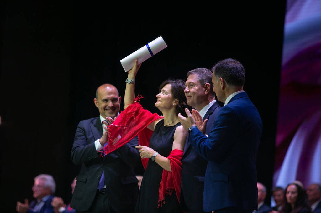 García-Page celebra el acuerdo de todos para un nuevo Estatuto “fiel a la Constitución” y reitera su defensa de una financiación sin privilegios>> Ha presidido, en Albacete, el acto institucional con motivo del Día de Castilla-La Mancha  Objetivo CLM   El presidente de Castilla-La Mancha, Emiliano García-Page, ha celebrado este mediodía, en Albacete, “el acuerdo de todos”, que ha propiciado “esta misma semana”, la reforma del Estatuto de Autonomía, que será “fiel al espíritu de la Constitución”, al tiempo que ha reiterado la defensa de una financiación autonómica justa en la que “no buscamos privilegios, pero tampoco los consentiremos, ni en este terreno ni en ninguno”, ha incidido. Así lo ha puesto de relieve en el acto institucional del Día de Castilla-La Mancha, que se ha celebrado en el Palacio de Congresos de Albacete y en el que se han otorgado 43 distinciones a otras tantas personas y entidades destacadas por su contribución al desarrollo de la Comunidad Autónoma. Unos “reconocimientos que son del alma, del corazón y, lógicamente, de la cabeza, porque tienen que avalar una inmensa trayectoria, casi siempre de sacrificio, de esfuerzo, también de aventura”, ha reconocido. En este marco, el presidente autonómico se ha congratulado por el consenso parlamentario alcanzado el pasado jueves y que ha permitido aprobar, “después de décadas de andadura”, un texto que no está “hecho desde la deslealtad”, porque, entre otras razones, “aquí tenemos a gala que el artículo 138 de la Constitución establece que ningún estatuto de autonomía, ni tampoco ninguna financiación, puede suponer privilegios de unos territorios sobre otros”, ha reseñado. “No queremos ser más, pero desde luego no nos vamos a conformar nunca con ser menos”, ha ahondado. En torno a este asunto, ha recordado su “compromiso” de sacar adelante el nuevo Estatuto “solo si había acuerdo” en el Parlamento autonómico, algo que nace de la “convicción” y la “actitud”, puesto que “merece la pena que las cosas que se hagan con vocación de durar sean lo más apoyadas posible”. En este sentido, ha esperado “que el acuerdo que aquí hemos conseguido PSOE y PP se consolide en el Congreso de los Diputados”. “Hemos conseguido que el proyecto sea de todos”, porque “la región es de todos”, ha resumido el jefe del Ejecutivo castellanomanchego, quien ha remarcado que “la gente ve que aquí se puede gobernar para todos”, dado que “gobernar es siempre a favor de todos, o al menos, no contra nadie” y que “gobernar significa, además, cumplir”, ya que “si no se cumple, será otra cosa, pero no sé si se podría decir gobernar”, ha concluido. Una autonomía que ha potenciado los grandes servicios públicos “Todas las competencias que nos hemos atrevido a asumir van mucho mejor que cuando estaban en el Estado, y esto va más allá de la izquierda y de la derecha”, ha resaltado Emiliano García-Page, para quien, por ejemplo, en Sanidad “hemos estado contratando a un médico nuevo cada día” o que “solo la superficie sanitaria que hemos puesto nueva equivale a 50 campos de fútbol”. En este punto, y teniendo en cuenta que “se pueden medir las cosas de muchas maneras, yo las mido sobre todo con la inmensa plantilla de profesionales sanitarios que, no solo en el Covid, sino todos los días, dan lo mejor de sí para que los demás estemos mejor”, ha elogiado antes de brindar su “gratitud permanente” a todo el personal sanitario. Un agradecimiento que ha extendido a otros sectores, como al educativo, con “5.200 docentes más” en la última década y “con récord en gasto por alumno”, ha precisado. Datos similares se registran en los “avances en la calidad de vida” y en la “dignidad de las personas”, encabezando la región los “récords en las listas de gestión en la dependencia, la atención a la discapacidad y las residencias de mayores”, ha continuado. Empleo al alza y empresas en constante expansión En paralelo, el presidente regional ha repasado también algunos datos económicos como que “uno de cada cuatro empleos estructurados de esta tierra, se han creado en los últimos diez años” o que “el 75 por ciento de las empresas extranjeras ya nos está presentando proyectos de ampliación o de reinversión”. Igualmente, García-Page ha resaltado “la inmensa red de carreteras” cuyo mantenimiento y ampliación asumió la Comunidad Autónoma y que “equivale a la frontera más larga del planeta, que es la que hay entre Estados Unidos y Canadá”. “¿Para qué merece la pena tanto trabajo si no es para compartir esa riqueza?” se ha preguntado, en referencia a un sistema basado en “una socialdemocracia clásica, no fanática, incluyente, confortable, no ideologizada, simple y llanamente, útil”, ha enfatizado ante cientos de representantes de todos los ámbitos institucionales y sociales de Castilla-La Mancha y acompañado por el presidente de las Cortes regionales, Pablo Bellido; por los miembros del Gobierno autonómico, los presidentes de las cinco Diputaciones Provinciales y por los delegados de la Junta en cada una de estas provincias, entre otros representantes políticos de diversas formaciones, además de por el alcalde de Albacete, Manuel Serrano.  |