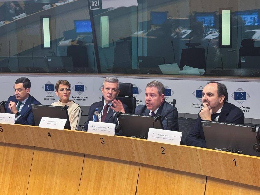 El jefe del Gobierno castellanomanchego se ha pronunciado así junto a los presidentes autonómicos de Galicia, Alfonso Rueda; de Andalucía, Juan Manuel Moreno Bonilla; de Navarra, María Chivite; y en compañía del embajador Representante Permanente de España ante la UE, Marcos Alonso. La cita deriva de la 'Declaración Galicia', rubricada el pasado mes de octubre y que "Castilla-La Mancha apoya y avala", ya que apuesta por una revisión del Marco Financiero Plurianual 2028-2034.