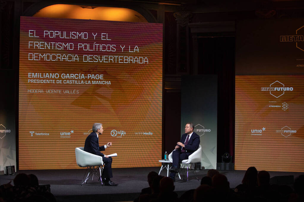García-Page reclama "volver a los grandes pactos de Estado" frente al "frentismo fabricado">> El presidente regional afirma que el 95% de la división política en España es artificial y pide "celebrar la Transición" Objetivo CLM El presidente de Castilla-La Mancha, Emiliano García-Page, ha apostado hoy por "volver a un camino de grandes pactos de Estado" y "plantearnos una agenda de posibles acuerdos globales de país". En su intervención en la cuarta edición del foro 'Metafuturo' celebrada hoy jueves en el Ateneo de Madrid, ha subrayado que "la sociedad española está enormemente harta y está pidiendo, de una manera bastante clamorosa, un paréntesis de razonable normalidad". García-Page ha protagonizado una de las sesiones del foro participando en el diálogo 'El populismo y el frentismo políticos y la democracia desvertebrada' junto al periodista y presentador Vicente Vallés, estando acompañado por la consejera Portavoz del Gobierno regional, Esther Padilla. El jefe del Ejecutivo autonómico ha resaltado la importancia de "los pactos no formalizados, que son las decisiones trenzadas en España que han sido más eficaces". Se ha referido a medidas que los dos grandes partidos han implementado y que, "en teoría, eran predecibles del otro", como "la reconversión industrial" ejecutada por el PSOE o la supresión "de los gobiernos civiles o del servicio militar" por parte del PP. Situaciones que constituyen "el trenzado más eficaz, porque dejan atadas muchas situaciones". En la actualidad, a juicio de García-Page, "se han roto el 90 por ciento de las pautas de comportamiento normal, estandarizados, que entendíamos que eran lógicas en la política" y es necesario recuperar una "dosis importantísima de acuerdos", tal y como ocurrió en la Transición. Estas declaraciones se producen en el día en que se cumple el 50 aniversario del fallecimiento del dictador Francisco Franco. El presidente regional ha abogado por celebrar la Transición, porque "para mí tiene valor todo lo que vino después" de la muerte del dictador, al tiempo que ha apelado a "celebraciones omnicomprensivas" de los años que llevaron a España a la democracia. Ha reiterado su intención de llevar a cabo "un desempeño importante en la celebración de lo que fue la Transición" en Castilla-La Mancha y ha rechazado "celebraciones que no sean omnicomprensivas". En su análisis de la situación sociopolítica, García-Page ha identificado "tres populismos" que han emergido en este siglo XXI y que se encuentran ahora "en retroceso". Se ha referido al "populismo político social", al "populismo orgánico que se ha colado en los partidos, en las organizaciones y en las instituciones" y al "populismo independentista", que según ha afirmado se encuentra "en caída libre". El mandatario castellanomanchego ha apuntado que "el frentismo que vivimos en España es, en un 95 por ciento, fabricado" y que "en los niveles de convivencia de la ciudadanía no se viven las cosas de la misma manera". De igual modo, ha explicado que "el 90 por ciento de los problemas que tenemos hoy en España derivan de nuestros propios éxitos" y que necesitar "más autovías o más líneas eléctricas son síntomas de problemas que tendríamos que estar hoy celebrando". |