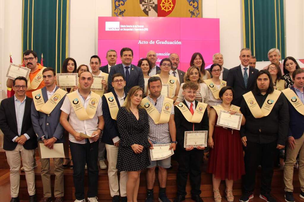 La delegada de la Junta en Ciudad Real, Blanca Fernández, ha participado este viernes en el acto de graduación de la Cátedra ‘Incluye e Inserta Ciudad Real’ en el que han participado 15 personas con discapacidad intelectual y donde ha felicitado a la Universidad de Castilla-La Mancha por esta “iniciativa con alma que hace que la sociedad sea más justa” añadiendo que “apostar por la inclusión laboral y por la autonomía personal de las personas con discapacidad, especialmente con discapacidad intelectual que son las que más barreras tienen para esa inclusión laboral, es una política necesaria que da sus frutos”.