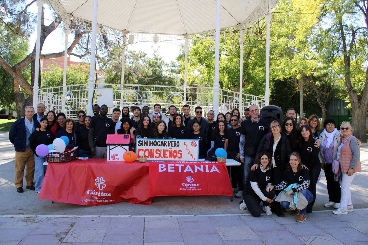 Guadalajara se vuelca por las personas sin hogar y “sus sueños” Objetivo CLM “Sin hogar, pero con sueños”, ese es el eslogan de la campaña de Personas Sin Hogar de Cáritas Española a la que se suma, como cada año, Cáritas Diocesana Sigüenza-Guadalajara y que se ha hecho visible en el parque de la Concordia con un flashmob en el que han participado decenas de personas entre alumnos de los colegios Santa Ana y Maristas, residentes de Betania y trabajadores de la entidad. Esta actividad tiene un objetivo claro de sensibilización ya que “pretendemos que la gente se acerque, escucha y acompañe. Sin Seres humanos como cualquiera de nosotros, personas que merecen ser atendidas con dignidad y amor”, ha explicado María Aguilera, responsable del Área de Inclusión de Cáritas Diocesana desde donde se atiende a personas en situación de sin hogar. Según sus cifras, han atendido a más de 340 personas de enero a septiembre de este año, personas invisibles para la sociedad, pero que desde Cáritas se les ofrece una oportunidad con dignidad y respeto para salir adelante. La performance ha consistido en una representación literal de personas sentadas sobre cartones, donde cada una ha contado su sueño, después se ha leído el manifiesto y el evento ha culminado con la participación de los alumnos, quienes también han escrito sus sueños en un pos-it y lo han depositado en una casa de cartón, elaborada en los talleres que realizan los residentes de Betania, el centro de atención residencial de Guadalajara. Acabada la actividad de calle, residentes de Betania y trabajadores de Cáritas han participado en una eucaristía oficiada por el obispo Julián Ruiz Martorell. |