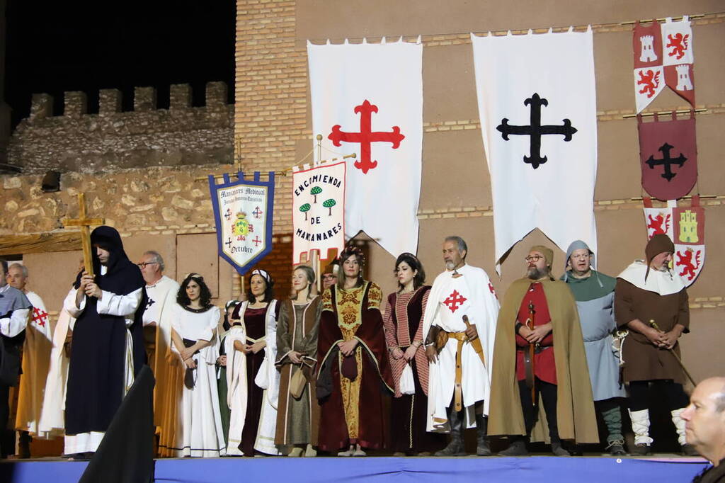 Tras el discurso, la comitiva dio paso a la procesión de las antorchas, un acto que cada año atrae a más público por su singularidad y ambientación medieval inmersiva. El desarrollo por calles solo iluminadas con antorchas y velas creó una atmósfera única, con estampas de gran belleza visual como el encendido de pebeteros del castillo o la cruz de Calatrava formada con velas rojas en la calle Virgen del Carmen.