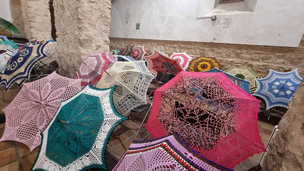 La exposición de paraguas elaborados con ganchillo se puede visitar los días 17 y 18 de junio en el Auditorio Inés Ibáñez Braña, en horario de 10:30 a 13:30 horas y de 18:30 a 20:30 horas.