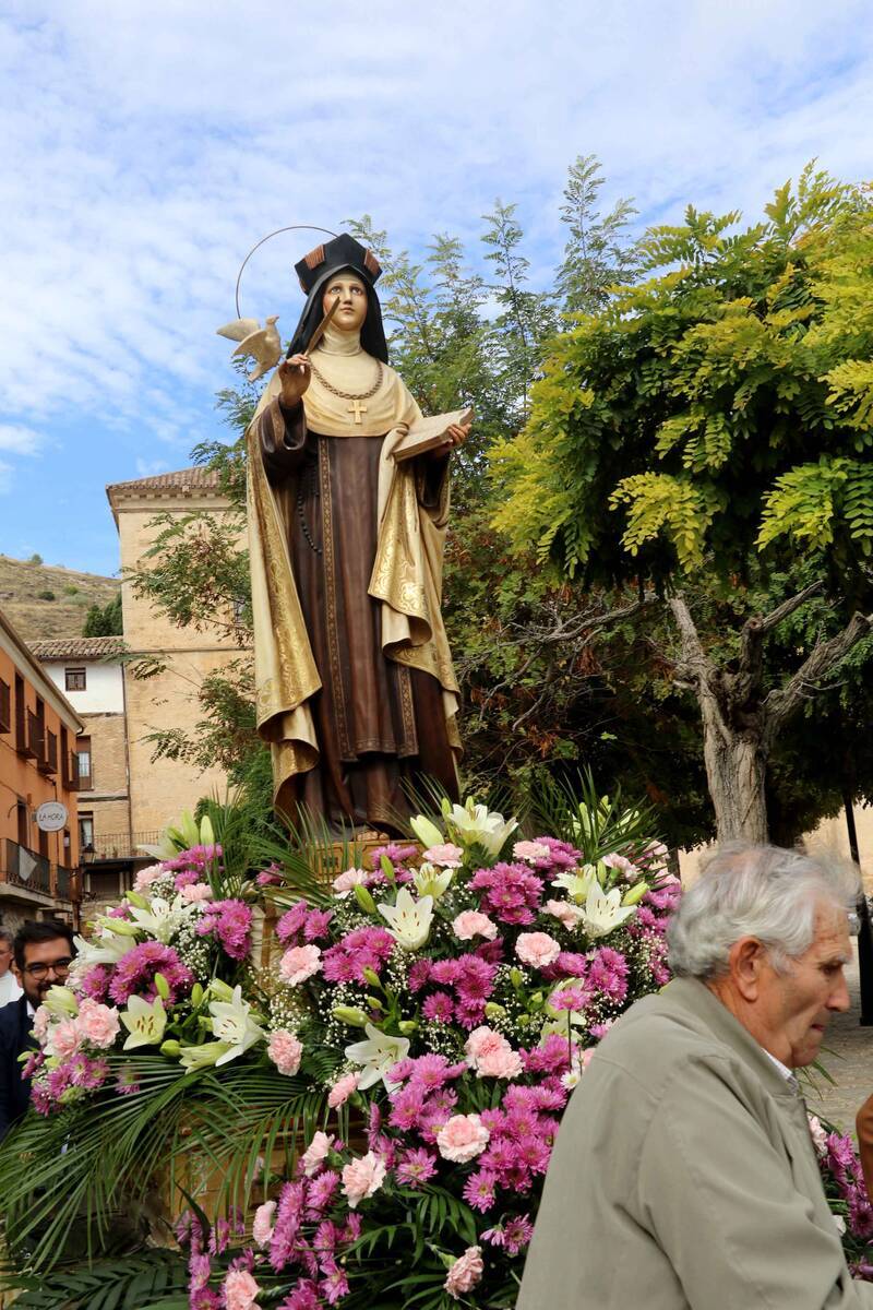 Pastrana celebra su fiesta patronal en honor a Santa Teresa Objetivo CLM Pastrana celebró ayer su fiesta patronal en honor a Santa Teresa, doctora de la Iglesia y considerada además su más grande mística, en el día de su onomástica, el 15 de octubre. Las campanas de la Colegiata sonaban profusamente a partir de las doce y cuarto del día de ayer. Acompañando al párroco local, Emilio Esteban, estuvo José Luis Ruiz, que lo es de Torrejón de Rey, concelebrando el oficio religioso con él. Ruiz predicó muy bellamente sobre Santa Teresa, maestra de oración, en este Año de la Oración 2024. Las ofrendas, en la misa, hicieron todas referencia a la patrona de Pastrana: un bastón, un libro con la vida de Santa Teresa, unas alpargatas, un bonete, que recuerda a la Santa Teresa doctora de la Iglesia, un tintero, con su pluma, y un escapulario carmelitano. Pasada la una de la tarde, la imagen de Teresa de Cepeda salía, empujada por los fieles pastraneros, en solemne procesión por las calles de la villa ducal, precedida por las notas de la Banda de Música, dirigida por Pascual Suñer. La talla, bellamente ornamentada de flores, salió por la Calle Mayor, para llegar a la Plaza de la Hora, circunvalarla, y regresar, pasando por delante de la calle de Santa Teresa de Jesus, la Castellana, que lleva su nombre, de nuevo a la Colegiata. Ya de vuelta, los fieles entonaron algunas estrofas del himno de Santa Teresa. El alcalde de Pastrana, Carlos Largo, encabezó la representación municipal en la ceremonia, acompañado por la senadora Montserrat Rivas, por el alcalde de Valdeconcha, José Antonio de la Fuente, y por la alcaldesa de Sayatón, Rocío Iniesta, entre otras personalidades. La santa andariega fundó en la villa ducal dos conventos, dejando tras de sí una estela imborrable, que se puede seguir, tanto en la localidad alcarreña como por toda España, en las 'Huellas de Teresa', una ruta turística, religiosa, cultural y patrimonial que da a conocer la obra y legado de la abulense. Santa Teresa es, sin lugar a dudas, y junto a la princesa de Éboli, el icono de Pastrana. Santa Teresa murió el 4 de octubre, pero fue enterrada al día siguiente en Alba de Tormes (Salamanca), el 15 de octubre. Esos once días de diferencia no existen, puesto que fue precisamente en el día de su muerte, 1582, hace 442 años, cuando el entonces nuevo calendario gregoriano corrigió el desfase que, al cabo de milenio y medio, había ido acumulando el de Julio César, conocido como 'juliano'. Además de la fiesta patronal, Pastrana celebró ayer también otra efeméride, puesto que justamente ayer hizo 443 años del bautizo, en la misma Colegiata de Pastrana, de Fray Juan Bautista Maino, maestro de la pintura del barroco español. Sus padres fueron un comerciante de paños milanés y una noble portuguesa que estuvieron al servicio de la princesa de Éboli, Ana de Mendoza. La Colegiata de Pastrana conserva dos tablas realizadas por este extraordinario pintor, que tiene varios cuadros expuestos en el Museo del Prado. A partir de las dos de la tarde, la Banda de Música de Pastrana ofreció, en el Centro Social, un concierto en honor a Santa Teresa, en el que hubo un aperitivo para los vecinos de Pastrana. Intenso fin de semana La fiesta patronal de ayer cerraba un largo fin de semana en el que la Villa Ducal ha llevado a cabo las actividades programadas por la celebración de la Virgen del Pilar y Santa Teresa. Así, el sábado Día de la Hispanidad y de la Virgen del Pilar tenía lugar la tradicional Izada de la Bandera de España en la Plaza del Deán. El pueblo de Pastrana acompañó a la Guardia Civil acuartelada en Pastrana, en el día en que celebraba su fiesta patronal. A continuación, la Banda de Música de Pastrana acompañaba a los agentes a la Iglesia para celebrar la Misa del Pilar. En la tarde del sábado, tenía lugar el espectáculo 'Lorca Suena', en el Palacio Ducal. Se trata de una propuesta músico-poética nace de la necesidad de homenajear al poeta dramaturgo, Federico García Lorca. Como la obra de Lorca, obedece a un impulso primario. El deseo, la pasión y la muerte constituyen el eje central del proyecto. Este espectáculo multidisciplinar se sumerge en sus poemas, obras teatrales y todo su legado desde las entrañas y sin artificios. Sus versos sonaron en el mismo lugar en el que hace más de quinientos años sonaron también los de Santa Teresa, en boca de la princesa de Éboli, para gran disgusto de la santa andariega… La actuación Lorca Suena forma parte del programa Dinamiz-ARTj que promueven el Instituto para la Transición Justa (ITJ) y la Fundación Ciudad de la Energía (CIUDEN) para dinamizar la actividad cultural en los municipios afectados por el cierre de la minería y de las centrales térmicas y nucleares e impulsar la carrera de jóvenes artistas que viven en estos territorios. Después tuvieron lugar las visitas teatralizadas al Palacio Ducal, que, un mes más, colmaron todas sus plazas. El domingo, en la Plaza de la Hora, aprovechando el buen tiempo que por fin llegaba al fin de semana, se instaló un parque infantil de hinchables en la Plaza de la Hora. |