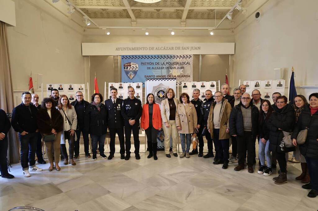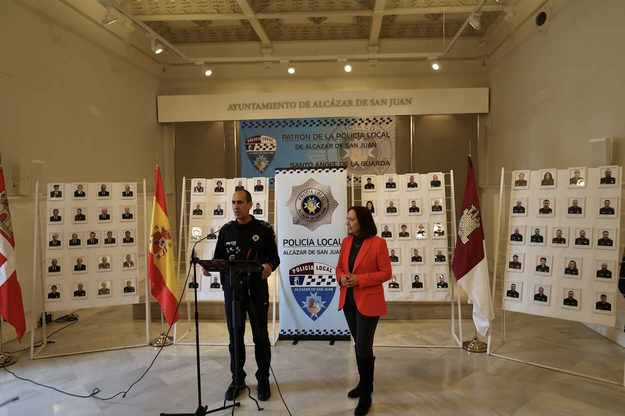 La Policía Local de Alcázar de San Juan ha inaugurado esta mañana la exposición de fotografía "Agentes del Cuerpo de la Policía Local 201", una muestra de retratos de todos y todas los agentes que han pasado por el cuerpo alcazareño en sus 32 años de historia organizada con motivo de la inminente llegada del día de su patrón, el Santo Ángel de la Guarda, que celebrarán el próximo día 3 de marzo. La alcaldesa Rosa Melchor, junto con los concejales Amparo Bremard y José Antonio Navarro, ha estado presente para acompañar a la Policía Local y a todos los familiares y amigos que han asistido a la inauguración.