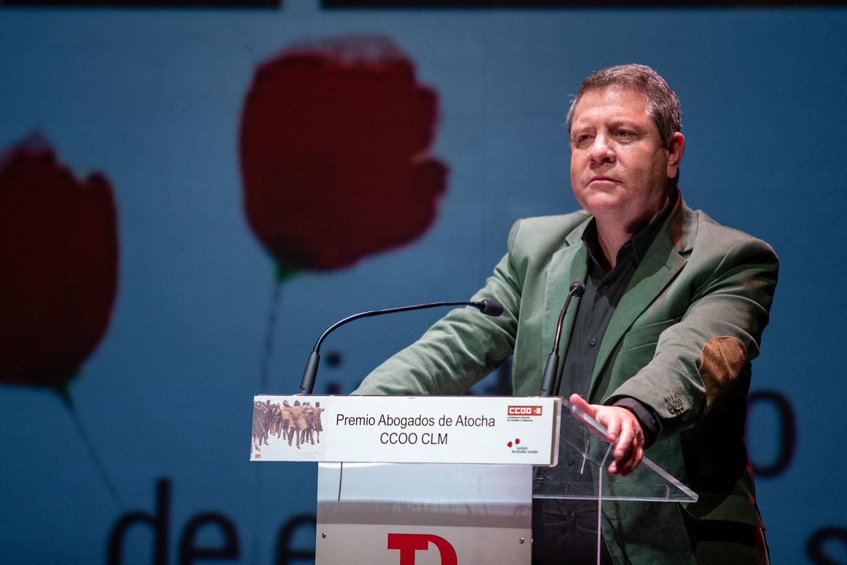 El presidente regional reivindica “la necesidad de que exista conciencia” como eje de “una democracia vertebrada y organizada”>> Ha clausurado la ceremonia de entrega del Premio ´Abogados de Atocha´ que ha recibido la organización humanitaria Open Arms Objetivo CLM El presidente de Castilla-La Mancha, Emiliano García-Page, ha reivindicado, esta tarde en Toledo, “la necesidad de que exista conciencia” como eje de “una democracia vertebrada y organizada”. Al respecto, el presidente autonómico ha advertido que “todo lo que no sea eso es un campo abonado para que pueda cundir el populismo, la demagogia, la mentira, el populismo, y la irrealidad”. El presidente García-Page ha realizado estas declaraciones durante la entrega del Premio ´Abogados de Atocha´, que promueve Comisiones Obreras Castilla-La Mancha (CCOO-CLM) y que ha recaído en la organización humanitaria Open Arms, dedicada al rescate y protección de las personas abandonadas en aguas internacionales. “Cada persona que habéis rescatado es un servicio que nos hacéis a nosotros, a los que no estamos allí”, ha agradecido “de todo corazón” al fundador de Open Arms, Óscar Camps. En el Teatro de Rojas, el presidente castellanomanchego ha valorado la labor de Open Arms y ha reiterado la importancia de “conducirse con ideas”, al tiempo que ha señalado que, “si son universales, lo son porque las podemos compartir todos, por eso son Derechos Humanos”. Al respecto, García-Page ha concluido “que por las ideas no se puede matar, pero por tus ideas puedes dejarte la vida, puedes morir”. En este marco, Emiliano García-Page ha subrayado que “se necesitan organizaciones fuertes” y ha lamentado que, en la actualidad, “una de las cosas que están en cuestión y en crisis es el hecho organizativo” porque “no está de moda estar en las organizaciones”, ha proseguido. En este sentido, ha considerado “indispensable” que haya “organizaciones que canalizan la conciencia organizada”. Asimismo, el jefe del Ejecutivo autonómico, acompañado por varios miembros de su Gobierno, ha elogiado la voluntad para llegar a acuerdos por parte del sindicato Comisiones Obreras, cuyo secretario general, Unai Sordo; y su responsable a nivel regional, Paco de la Rosa, le han precedido en el uso de la palabra. “Lo que se echa de menos es a la gente que está para tomar las decisiones difíciles y para aguantar el tipo”, ha señalado García-Page, quien ha resaltado la necesidad de que, en España, “volviera a estar bien visto ponerse de acuerdo”. |