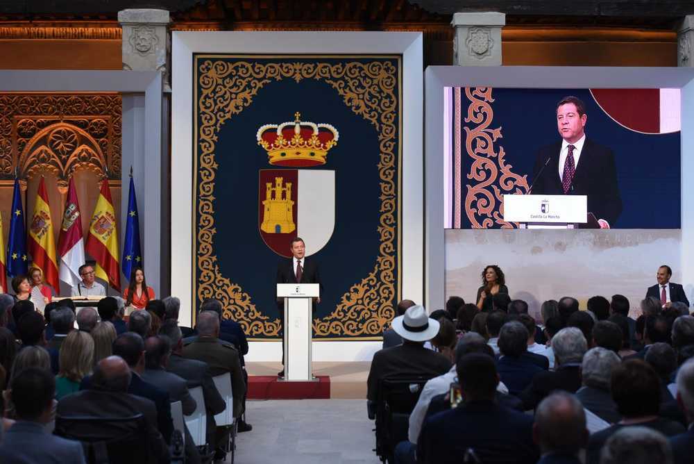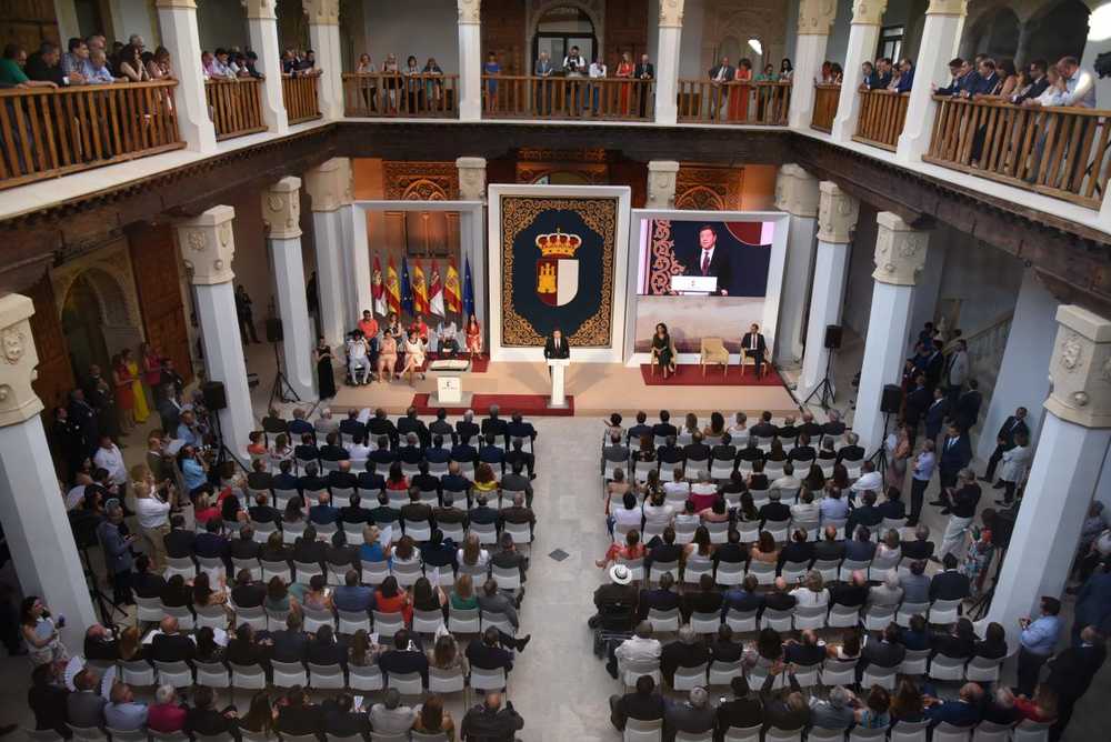 El presidente de Castilla-La Mancha adelanta una legislatura marcada por “más diálogo, más pactos, más cercanía y más moderación”>> De la mano de la humildad y la honestidad como señas de identidad Objetivo CLM El presidente de Castila-La Mancha, Emiliano García-Page, ha avanzado una legislatura caracterizada por “más diálogo, más pactos, más cercanía y más moderación”; pilares “fundamentales” de la acción de gobierno para los próximos cuatro años que, necesariamente, vendrán de la mano de un ejercicio político que tengan a la “humildad” y la “honestidad” como señas de identidad. Así lo ha subrayado durante su toma de posesión como presidente de la Junta de Comunidades de Castilla-La Mancha por la fórmula de juramento; acto que se ha celebrado este sábado en el Palacio de Fuensalida, sede de la Presidencia autonómica y al que han asistido cerca de 550 personalidades del mundo político, social, cultural, sindical y empresarial, además de familiares y amigos. García-Page ha subrayado que durante los próximos cuatro años, ofrecerá “más diálogo institucional y social” a los agentes sociales y económicos de la región, propiciando “más pactos”, después de una legislatura en la que Castilla-La Mancha ha destacado por ser la comunidad autónoma donde más acuerdos se han formalizado. Asimismo ha reiterado su apuesta por seguir implementando la “cercanía” que ha caracterizado la acción del Gobierno regional durante la pasada legislatura; una labor que también necesitará de “esfuerzo” y “confianza” constantes, siempre de la mano de la “moderación”, ingrediente “verdaderamente trascendente” en el contexto político actual. El presidente de Castilla-La Mancha, que ha anunciado asimismo la formación del nuevo equipo de gobierno que le acompañará durante los próximos cuatro años “en breves horas”, también ha hecho hincapié en que su “objetivo fundamental” al respecto es que, quienes pasen a formar parte del mismo es que sean personas “de una honestidad contrastada”. En este sentido, les ha transmitido que el hecho de gozar de una mayoría absoluta como la cosechada en Castilla-La Mancha es muestra del “cariño” y del “respeto” que la ciudadanía ha demostrado para con el Ejecutivo autonómico durante la legislatura 2015-2019. “Más política de la que ha votado la gente y más método del que ha votado la gente” El presidente de Castilla-La Mancha ha comprometido un nuevo mandato caracterizado por “más política de la que ha votado la gente y más método del que ha votado la gente”, comprometiéndose al mismo tiempo a ser el presidente de “todos y todas”, pero “un poquito más” de las personas que más lo necesitan. Por otro lado, García-Page ha expresado su deseo este nuevo mandato no tengan “un gobierno contra nadie” y manifestado su deseo de que las fuerzas políticas con representación en las Cortes regionales sean capaces de pactar por unanimidad muchos asuntos de interés para la comunidad autónoma en esta nueva legislatura. En este sentido, ha subrayado la importancia de asumir la labor de presidente del Gobierno autonómico con el objetivo de “arreglar los problemas de la gente” como máxima prioridad y “no salir a buscarlos”, destacando asimismo que los 40 años de democracia El presidente regional también ha tenido palabras de agradecimiento hacia sus allegados y familiares, destacando el apoyo recibido a lo largo de su vida por parte de su esposa, su hijo, su hija, y sus padres, así como por las personas que han ido jalonando sus años de evolución en política. Asimismo ha tenido palabras de recuerdo tanto para el exvicepresidente del Gobierno, Alfredo Pérez Rubalcaba, fallecido el pasado 10 de mayo, como para la exconsejera de Fomento, Elena de la Cruz, cuya pérdida –el 4 de abril de 2017- ha destacado como uno de los momentos “más duros” de la anterior legislatura. Un acto arropado por la sociedad civil de Castilla-La Mancha Previamente al juramento del cargo como jefe del Ejecutivo autonómico de Emiliano García-Page, han tomado la palabra, en nombre de los representantes de la sociedad civil de Castilla-La Mancha que han participado en el acto, la usuaria del servicio de capacitación de APANAS, Dulcinea Ávila Sánchez; y la beneficiaria del programa ‘Retorno del Talento’, María Dulcinea Ortiz. María Dulcinea Ortiz, ingeniera química, ha señalado que la iniciativa ‘Retorno del Talento’, que impulsa el Gobierno regional desde la pasada legislatura, le resultó “de gran ayuda” en el momento inicial, tanto para su regreso de Londres, donde trabajaba, como para la puesta en marcha de su proyecto emprendedor. Asimismo ha valorado la figura del mediador con la que cuenta este programa en la región y ha incidido en la necesidad de que permanezca activo en Castilla-La Mancha y se extienda a otras comunidades autónomas. Por su parte, Dulcinea Ávila Sánchez, usuaria del servicio de capacitación de APANAS, ha recordado cómo, en las pasadas elecciones, algunas personas con discapacidad pudieron ejercer por primera vez el derecho al voto. “No voy a decir a quién, porque el voto es secreto pero sí decir que estoy muy contenta de haber participado como una ciudadana más, tener derecho a elegir a mis representantes”, ha destacado Ávila, quien ha reclamado que “los políticos sean personas sensibles y cercanas” y que “entiendan y comprendan nuestras necesidades”, además de que “cumplan las leyes para que podamos vivir en una sociedad más justa y solidaria”. Dulcinea Ávila Sánchez, que ha reclamado el papel de las personas con discapacidad en la sociedad, ha pedido “apoyo” para lograr la incorporación plena al mercado laboral, teniendo “las mismas oportunidades y derechos” y a una vida independiente, como el resto de la ciudadanía. Por último, ha dado las gracias al presidente de Cast
