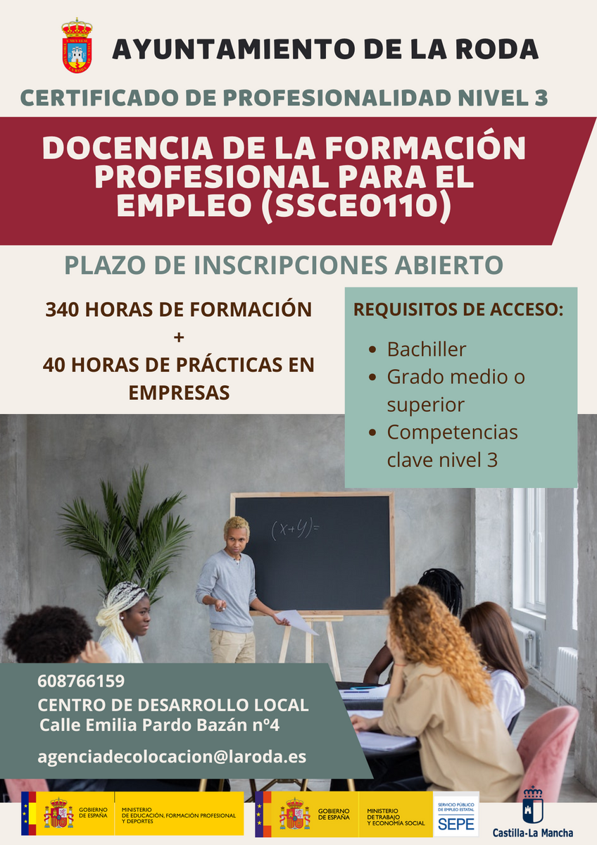 La Roda refuerza su apuesta por la formación y el empleo con nuevos cursos para 2026 Objetivo CLM El Ayuntamiento de La Roda, a través de la concejalía de Empleo y Formación, ha presentado el balance del programa municipal de formación 2024–2025 y la nueva oferta formativa que se pondrá en marcha a comienzos de 2026. Según ha explicado su responsable, María Ángeles García, durante este último año, se han desarrollado ocho acciones formativas en áreas como la electricidad, el comercio, la química, la digitalización y la logística, en las que han participado 185 personas de las que, el 65 por ciento ha encontrado empleo o continúa su formación, un dato que confirma la “eficacia y el impacto positivo de estas acciones en la empleabilidad local”. Todo esto, gracias a una inversión de más de 330.000 euros en formación, subvencionados íntegramente por el Gobierno regional, “consolidando una red municipal sólida, útil y con resultados reales”, ha añadido la edil. Nuevas acciones formativas para 2026 De cara a 2026, el Ayuntamiento de La Roda amplía su oferta con dos nuevos cursos gratuitos, ambos con certificado de profesionalidad oficial, subvencionados por la Junta de Castilla-La Mancha en colaboración con el Ayuntamiento. El primero de los cursos, ‘Operaciones Auxiliares de Montaje de Instalaciones Electrotécnicas y de Telecomunicaciones en Edificios’, es de nivel 1 y tendrá una duración de 380 horas. Está previsto que se inicie en enero de 2026, gracias a una subvención de 33.000 euros y para poder optar a él, solo será necesario inscribirse ya que no se requiere titulación previa. “Este curso está orientado a personas sin formación previa que deseen iniciarse en el sector eléctrico, uno de los más demandados y con mayor proyección de futuro”, ha explicado María Ángeles García. El segundo de los cursos, denominado ‘Docencia de la Formación Profesional para el Empleo’, es de nivel 3. También tendrá una duración de 380 horas y está previsto que dé comienzo en febrero de 2026. Un curso “muy demandado” que se ejecutará a través de otra subvención regional, en este caso de 39.120 euros y para el que sí es necesario acreditar el título de Bachiller o equivalente, o certificado de nivel III, o nivel II de la misma familia profesional. “Este certificado capacita para impartir formación reglada y profesional, un perfil cada vez más necesario en los nuevos programas de empleo”, según la responsable. En conjunto, ambas acciones supondrán una inversión de 72.120 euros en formación gratuita y homologada, “consolidando la apuesta del Ayuntamiento” por una educación práctica, certificada y con salidas laborales reales. La concejala de Empleo y Formación, María Ángeles García, ha destacado también que “la formación es la puerta del futuro, y desde La Roda queremos que nadie se quede atrás”. Según ha señalado, “estamos construyendo un modelo formativo sólido, útil y conectado con las empresas del territorio” y ha finalizado señalando que “seguiremos trabajando con ilusión y compromiso” porque “formar es crear futuro”. |