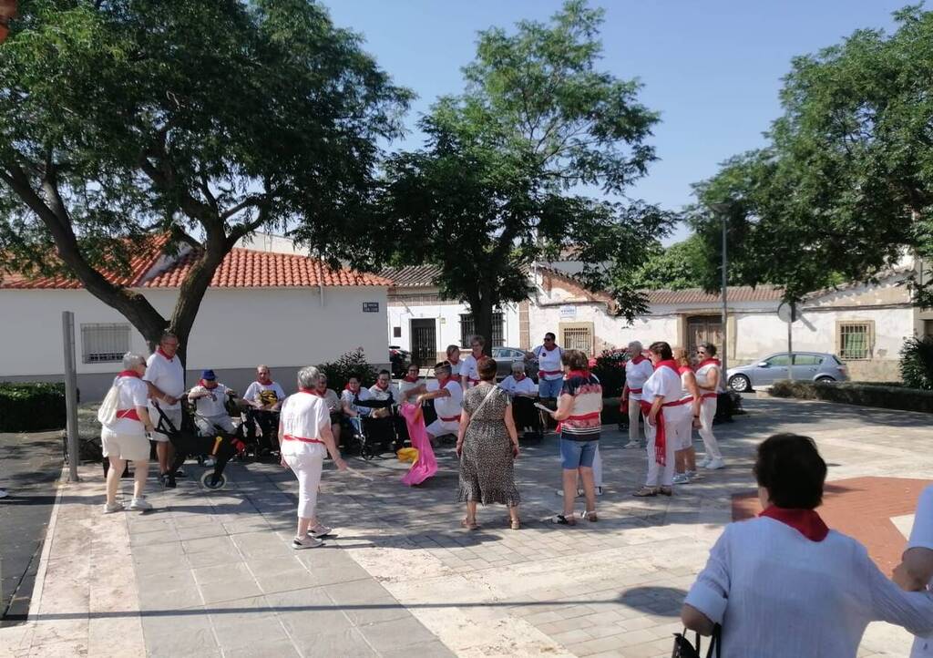 El Centro Municipal de Mayores del Lucero de Valdepeñas ha celebrado este martes, 8 de julio, su particular fiesta de San Fermín en el que han participado más de una veintena de mayores, ataviados con camiseta y pantalón blanco y pañuelo rojo que se han enfrentado en la Plaza de San Juan a un divertido e inofensivo encierro con un ‘toro’ diseñado para esta divertida ocasión.