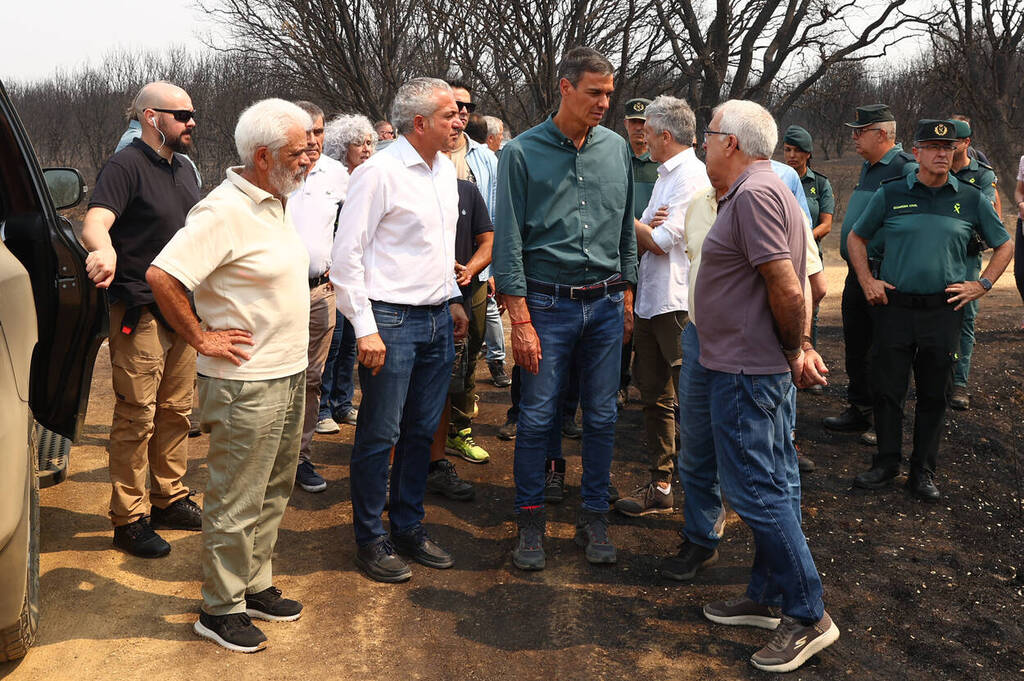 Sánchez anuncia la declaración de emergencia civil en zonas incendiadas y propone un pacto estatal contra la crisis climática>> El presidente visita las áreas afectadas en Cáceres y Zamora y adelanta medidas de reconstrucción tras los fuegos Objetivo CLM El presidente del Gobierno, Pedro Sánchez, ha recorrido este martes las zonas afectadas por los incendios en Jarilla (Cáceres) y Molezuelas de la Carballeda (Zamora), donde confirmó que el Consejo de Ministros declarará el próximo martes emergencia de protección civil en las áreas más castigadas. Esta medida permitirá destinar fondos estatales a la reconstrucción una vez se controle el fuego. Acompañado por la presidenta de Extremadura, María Guardiola; el ministro del Interior, Fernando Grande-Marlaska, y el delegado del Gobierno en la región, José Luis Quintana, Sánchez destacó en La Granja (Cáceres) el despliegue “desde el primer minuto” de los servicios de emergencia. “Seguiremos apoyando a las comunidades hasta la extinción total y durante la recuperación”, aseguró. Aunque la Agencia Estatal de Meteorología (AEMET) prevé el fin de la ola de calor, el presidente advirtió de que persisten “horas críticas” e instó a la población a “extremar las precauciones” y seguir las indicaciones oficiales. Un acuerdo transversal frente a la crisis climática Sánchez vinculó directamente los incendios con la “emergencia climática acelerada” y anunció que en septiembre promoverá un pacto de Estado que involucre a científicos, empresarios, sindicatos, administraciones autonómicas, locales y la ciudadanía. “Debemos trascender legislaturas y convertir estas políticas en compromisos permanentes”, insistió, retomando las demandas de vecinos de Villablino (León), otra zona afectada por las llamas. El objetivo, según explicó, es reforzar las capacidades de prevención y respuesta ante fenómenos extremos, que se han intensificado en la Península Ibérica. “El cambio climático no entiende de ideologías ni de ciclos electorales. Necesitamos una estrategia unificada y proporcional a la magnitud del desafío”, subrayó. El mandatario también abogó por un “reajuste” de competencias institucionales y recursos para abordar lo que calificó como “la mayor amenaza para el campo y la sociedad en su conjunto”. Las declaraciones se produjeron horas después de que el Ejecutivo activara dispositivos de coordinación con las comunidades autónomas para evaluar daños y articular ayudas. |