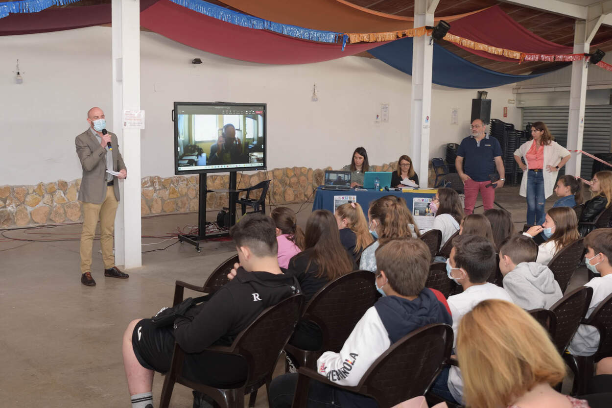 ‘Sé libre, que no te atrape la red’, en las III Jornadas de Convivencia Intercentros de Argamasilla de Alba Objetivo CLM Las adicciones a los dispositivos electrónicos, el abuso y la excesiva dependencia que de ellos tienen muchos jóvenes ha llevado a las III Jornadas de Convivencia Intercentros de Argamasilla de Alba, dirigidas al alumnado de 6º de Primaria y 1º de ESO, a centrar en esta materia las jornadas de este año. Bajo el título: “Sé libre, que no te atrape la red”, las jornadas se han desarrollado durante toda la mañana de este viernes 13 en el Auditorio de Verano. Organizadas por el IES Vicente Cano y los CEIP Azorín, Divino Maestro y Ntra. Sra. de Peñarroya, coordinados por el Área de Educación municipal, las terceras jornadas han sido inauguradas por el alcalde, Pedro Ángel Jiménez, y han contado con la intervención del inspector de educación, José Miguel Gutiérrez, y la participación de la vicepresidenta tercera de la Diputación de Ciudad Real y concejala de Turismo y Promoción Económica, Noelia Serrano, que ha hecho entrega de los premios del concurso de BookTubers. El alcalde ha pedido a los jóvenes que apaguen más las pantallas y fomenten sus relaciones sociales cara a cara, “aunque ahora os parezca mentira se puede vivir sin móviles, antes, no hace mucho tiempo, no existían los smartphone y quedábamos también con los amigos y jugábamos juntos, todos en el mismo lugar”, puesto que el trato personal directo con amigos o familiares no es comparable con hacerlo a través de las frías pantallas. Por lo que Jiménez los animó a vivir y a disfrutar sin móvil. José Miguel Gutiérrez ha pedido al alumnado que aprovechen esta oportunidad para reflexionar sobre aspectos de convivencia en los centros, subrayando la importancia que tiene todo lo relacionado con las nuevas tecnologías, que, si bien son muy beneficiosas, no hay que olvidar la necesidad de hacer un uso racional de ellas. Por otro lado, el inspector ha destacado del programa elaborado para esta edición, la charla ‘Intimidad en la red’, por alumnado ayudante TIC, y ‘Adicciones a las nuevas tecnologías’ por la Fundación CERES, “puesto que desde mi punto de vista sois demasiado jóvenes para manejar estos dispositivos, no sois conscientes de las capacidades y las consecuencias que pueden conllevar el mal uso de ellos”. Profundizando en el programa, tras una breve información sobre “¿qué es eso de ayudante TIC?”, y una charla cargo de varios de ellos y ellas sobre la intimidad en la Red, los chicos y chicas pudieron ver el corto ‘Los seguidores que tú no ves’ de UNICEF, el cual trata sobre el desconocimiento que tenemos sobre quién está detrás de la pantalla cuando se publica algo en las redes sociales, “todos y cada uno de nosotros debemos pensar antes de hacer clic”. Seguidamente, Laura Morales y Ana Navarro, psicólogas de la Fundación CERES, hablaron sobre la adicción a las nuevas tecnologías y el ciberbullying. Tras un descanso para el desayuno, ofrecido por las AMPA de los centros, la actividad se retomó con una charla-debate sobre ‘El libro de los rostros’ de Ana Isabel Conejo y Javier Pelegrín, el cual han leído y trabajado previamente. Finalizadas las intervenciones, Noelia Serrano ha hecho entrega de los premios del concurso de BookTubers realizado por los alumnos y alumnas sobre ‘El Libro de los rostros’. Así, el primer premio del concurso de BookTubers ha sido para Marta Mateos Carretero de 6º del CEIP Nuestra Señora de Peñarroya, dotado con un vale de 30 euros para gastarlo en tiendas de la localidad, y el segundo premio, dotado con un vale de 20 euros, también para gastar en establecimientos de la localidad ha sido para Adrián Carretón Choque de 1º de ESO. Ambos premios aportados por el Ayuntamiento de Argamasilla de Alba. La jornada ha finalizado con todos los chicos y chicas formando un círculo en el Auditorio de Verano, bailando y cantando al unísono el tema ‘Para Que el Mundo lo Vea’ de Arnau Griso. |