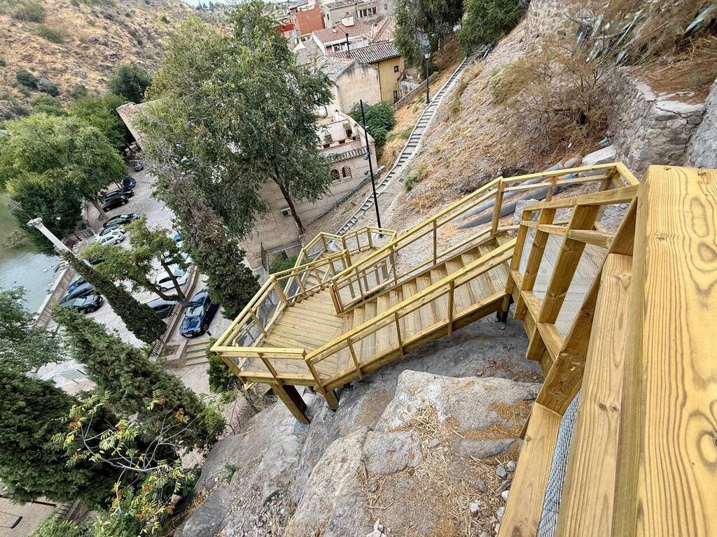 La intervención, ejecutada por la empresa Trento Arquitectura S.L., tuvo que prorrogarse tres meses más como consecuencia de los daños sufridos por la crecida del Tajo. Los trabajos han consistido en la instalación de una escalera de madera que salva un desnivel de 15 metros, una infraestructura que se integra con el entorno y permite dar fluidez al itinerario peatonal.