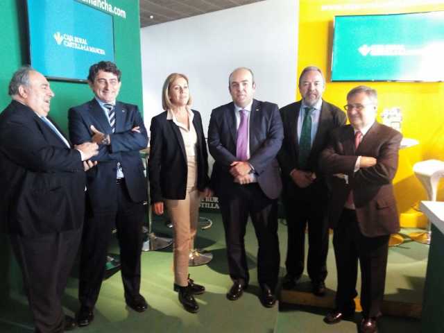 Cospedal, Ramos y Estévez, presentes en el stand de Caja Rural CLM en FarcamaObjetivo CLM El director de Relaciones Institucionales y el director de la División de Negocio de Caja Rural Castilla-La Mancha, Miguel Ángel Escalante y Enrique Muñoz, respectivamente, les recibieron en el expositor de la Caja, así como a la consejera de Educación, Cultura y Deportes de la Junta de Comunidades de Castilla-La Mancha, Reyes Estévez, quien estuvo acompañada por la directora general de Turismo, Comercio y Artesanía, Ana Isabel Fernández Samper. El alcalde de Talavera de la Reina, Jaime Ramos, o el presidente del C.D. Toledo, Fernando Collado, han sido otras de las personalidades que han querido acercarse hoy a este stand donde Caja Rural Castilla-La Mancha ofrece información a clientes así como a los visitantes de una muestra que en 2015 cuenta con el doble de expositores y productos, que van desde la cerámica hasta los muebles, joyería, manualidades o calzado, entre otros. |