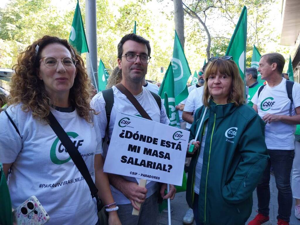 La Central Sindical Independiente y de Funcionarios (CSIF) se ha movilizado este martes frente a la sede nacional de Paradores en Madrid para visibilizar la precariedad que sufre la plantilla de esta empresa pública, compuesta por 5.500 trabajadores en toda España. En Castilla-La Mancha, cerca de medio millar de empleados prestan servicio en los nueve establecimientos de la región: Alarcón, Albacete, Almagro, Cuenca, Manzanares, Molina de Aragón, Oropesa, Sigüenza y Toledo.