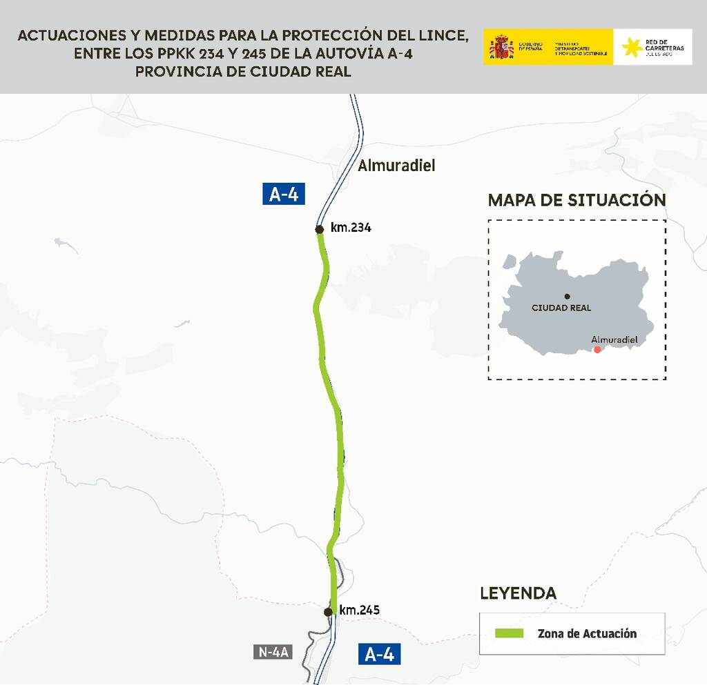 | Transportes adjudica por 988.418 euros obras anti-atropellos para el lince ibérico en la A-4 de Ciudad Real>> Instalación de vallas de 2,5 metros y pasos seguros en 11 kilómetros entre Almuradiel y Despeñaperros