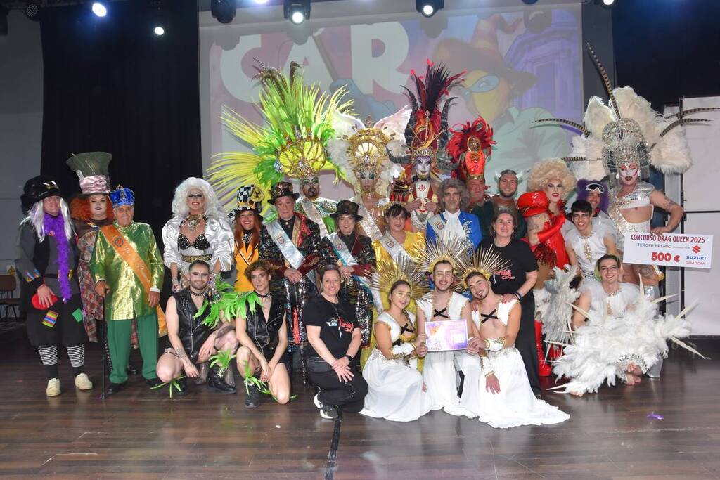 El jurado otorgó el primer premio, dotado con 1.000 euros, cerámica del carnaval y banda, a Los Turkis, por su propuesta ‘Ángeles’. El segundo puesto, con 800 euros y banda, fue para Xema Lakrin, quien presentó la fantasía ‘Ey tú! Machito, ¿quieres jugar?’. Por su parte, Drag Karola logró el tercer premio, de 500 euros y banda, con su espectáculo ‘Chata, frota la lámpara y verás, tres deseos se cumplirán’.