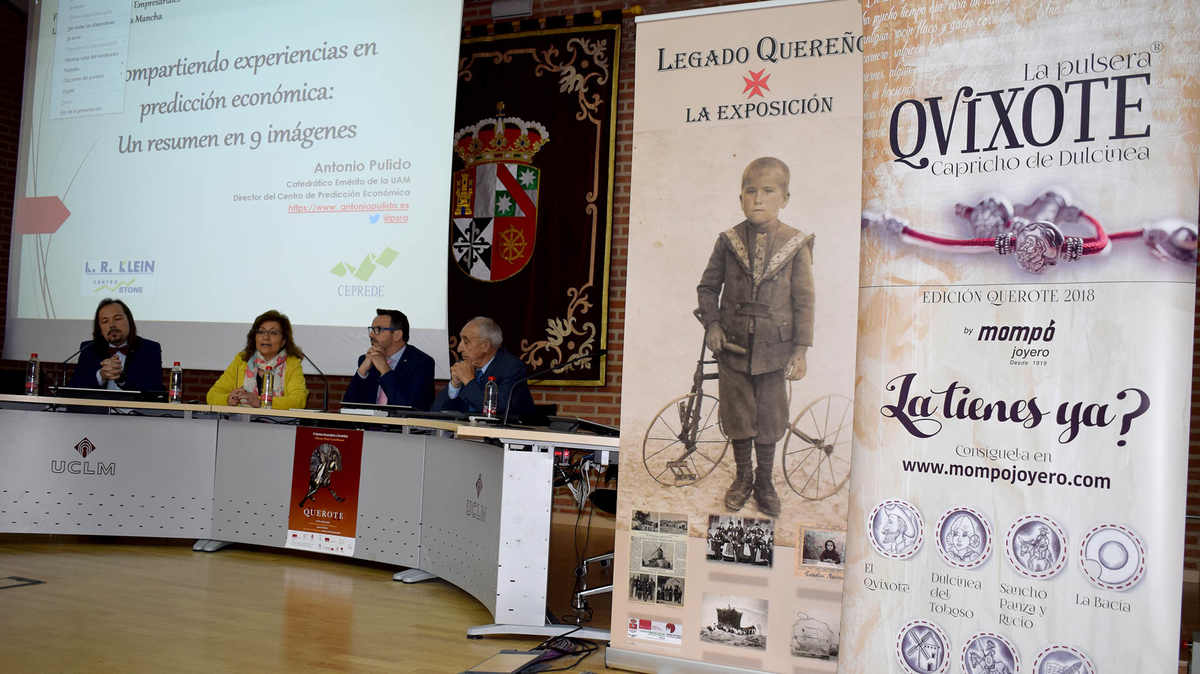 La I Jornada de Econometría, titulada: “Predicción económica, empresa quijotesca” ha comenzado esta mañana en el Campus de Albacete con la participación del catedrático emérito de Econometría de la Universidad Autónoma de Madrid, Antonio Pulido. El acto de presentación ha corrido a cargo del director académico de Investigación y Política Científica, Francisco José Sáez, junto a la decana de la Facultad de Económicas y Empresariales de Albacete, Carmen Córcoles, y el director de la jornada, Víctor Raúl López.