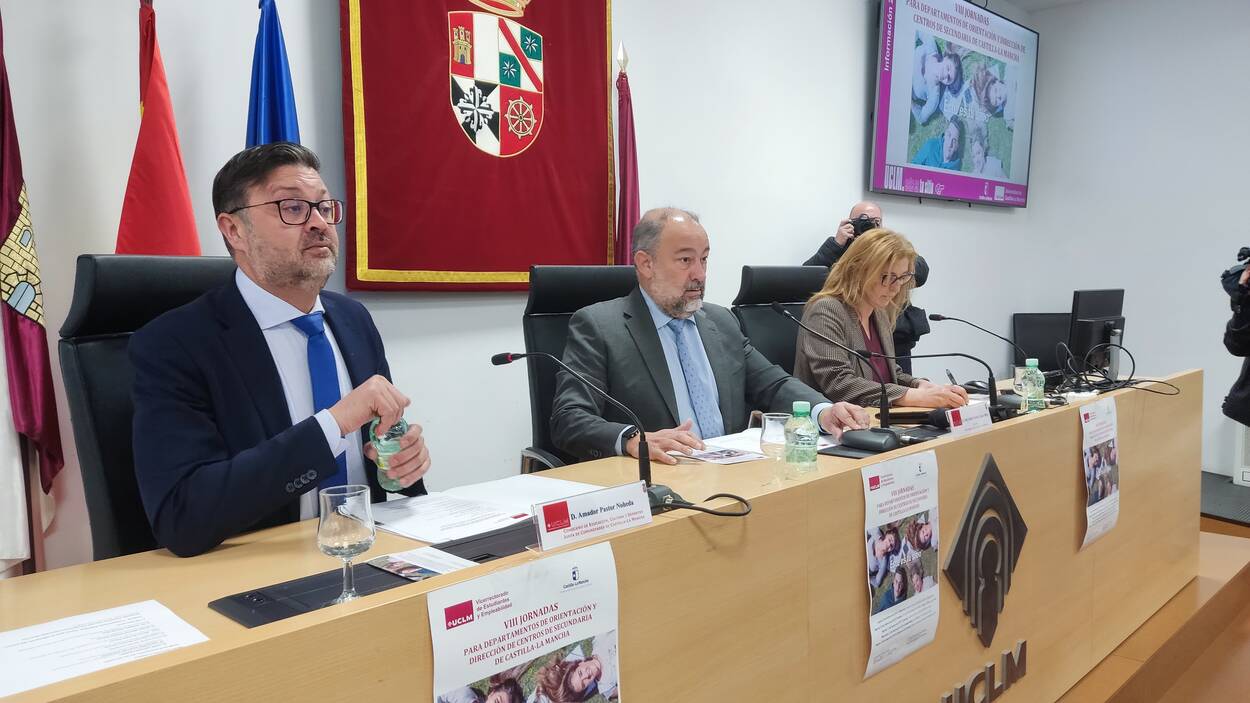 La Universidad de Castilla-La Mancha (UCLM) acogerá hasta el 18 de marzo en los campus de Albacete, Ciudad Real, Cuenca y Toledo y en la sede de Talavera de la Reina las VIII Jornadas para Departamentos de Orientación y Dirección de Centros de Secundaria de la región, organizadas por el Vicerrectorado de Estudiantes y Empleabilidad y la Consejería de Educación, Cultura y Deporte. La actividad, que hoy han inaugurado en Albacete el rector, Julián Garde; y el consejero de Educación, Amador Pastor, incidirá en la nueva Prueba de Acceso a la Universidad (PAU) de este año.