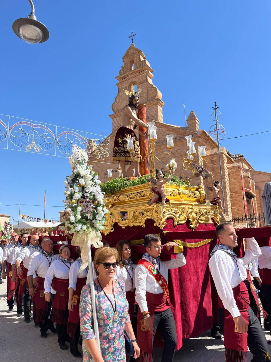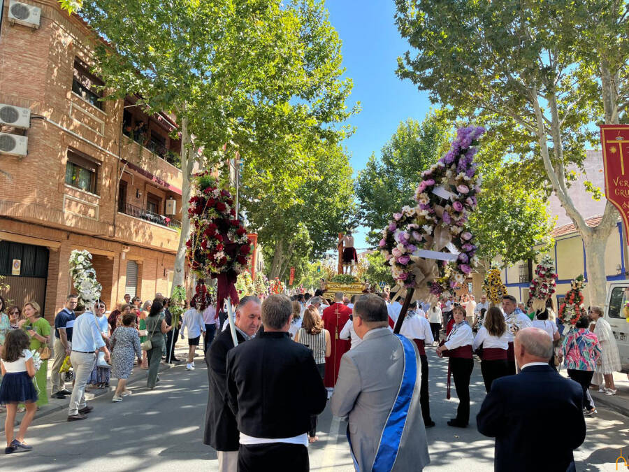 “Comenzamos el día grande de la festividad con una solemne misa de campaña al aire libre a las 11 de la mañana, seguida de la procesión del Cristo de la Columna. Este acto, acompañado por los hermanos de la Hermandad de Alabarderos, es uno de los más singulares de la celebración”, ha comentado Valverde, para señalar, a continuación, cómo los hermanos portan alabardas adornadas con aros de flores, cintas de colores y elementos religiosos.